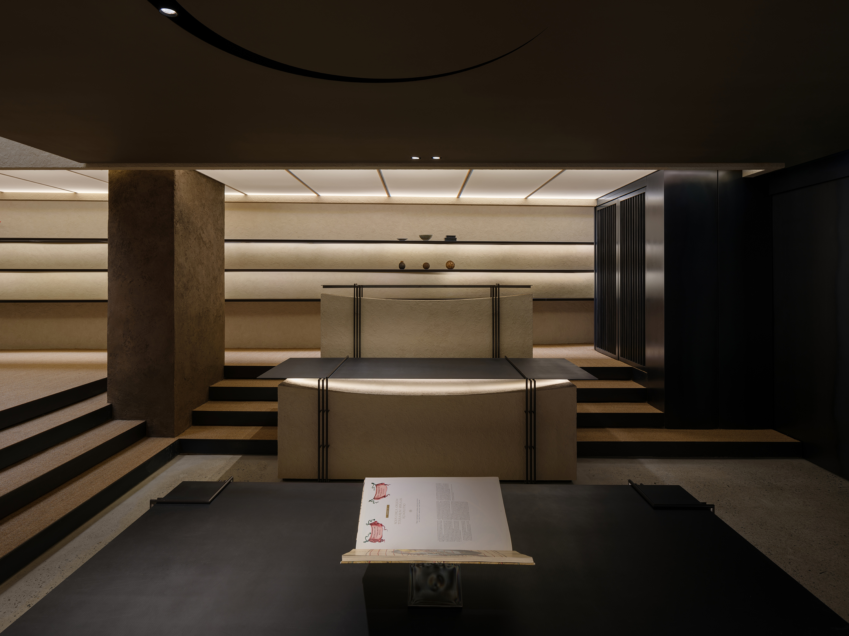 책을 보는 자세는 다양하다. 그래서 우리는 책을 보는 여러 자세를 먼저 연구하여 건축을 시작하였다. 또한, 책을 볼 때 과연 창은 중요할까? 경리단 깊숙한 곳에 위치한 사이트의 특성때문에 외부의 환경은 수 많은 전기줄과 복잡한 다세대 주택들의 풍경 뿐이었다. 본 건축은 천창과 벽 틈 으로 들어오는 빛 만을 받아들이며, 오히려 건축의 중요한 요소인 창을 배제함으로써 얻어지는 공간감과 독서를 위한 집중력으로 건축을 전개하였다.