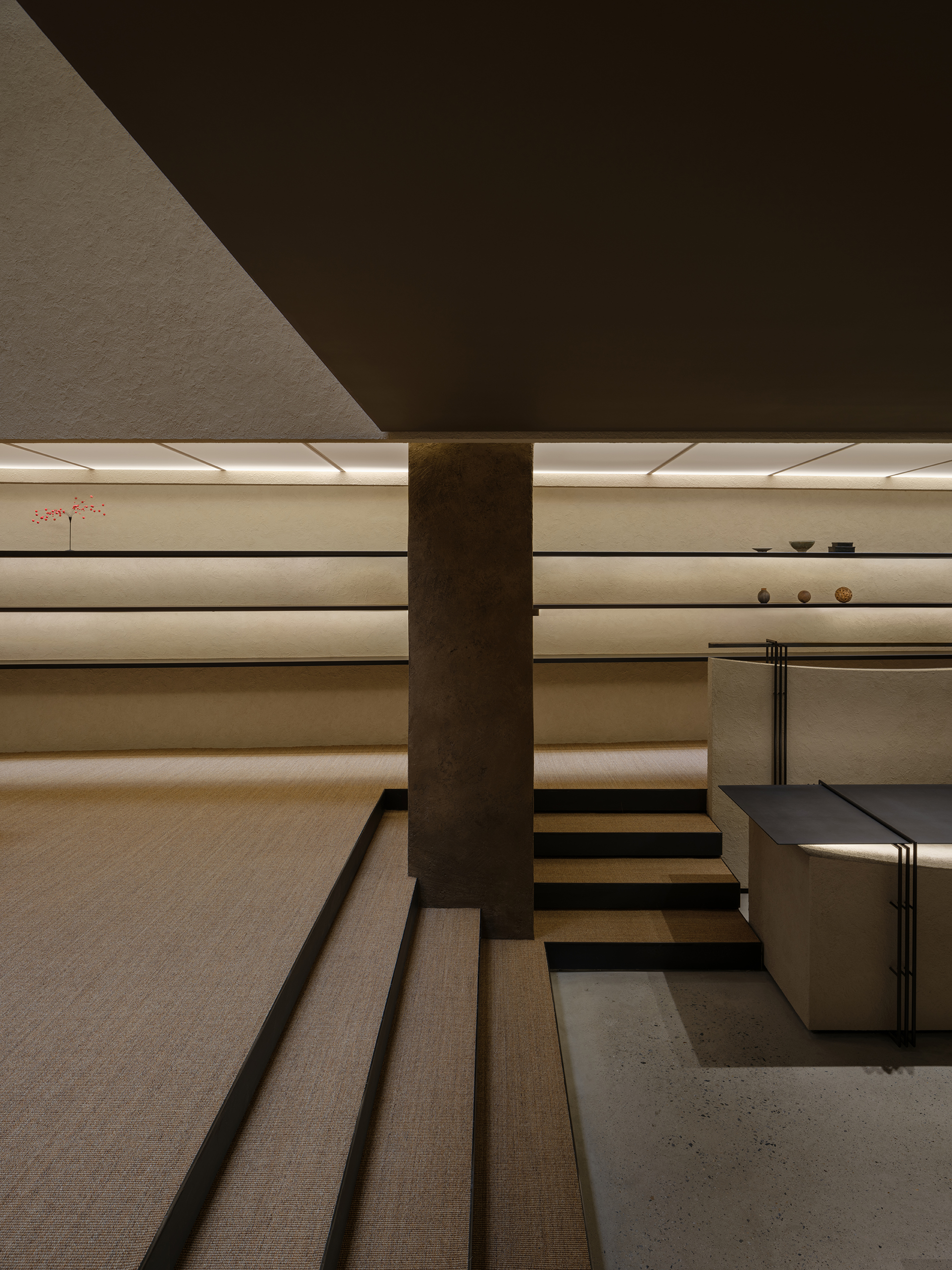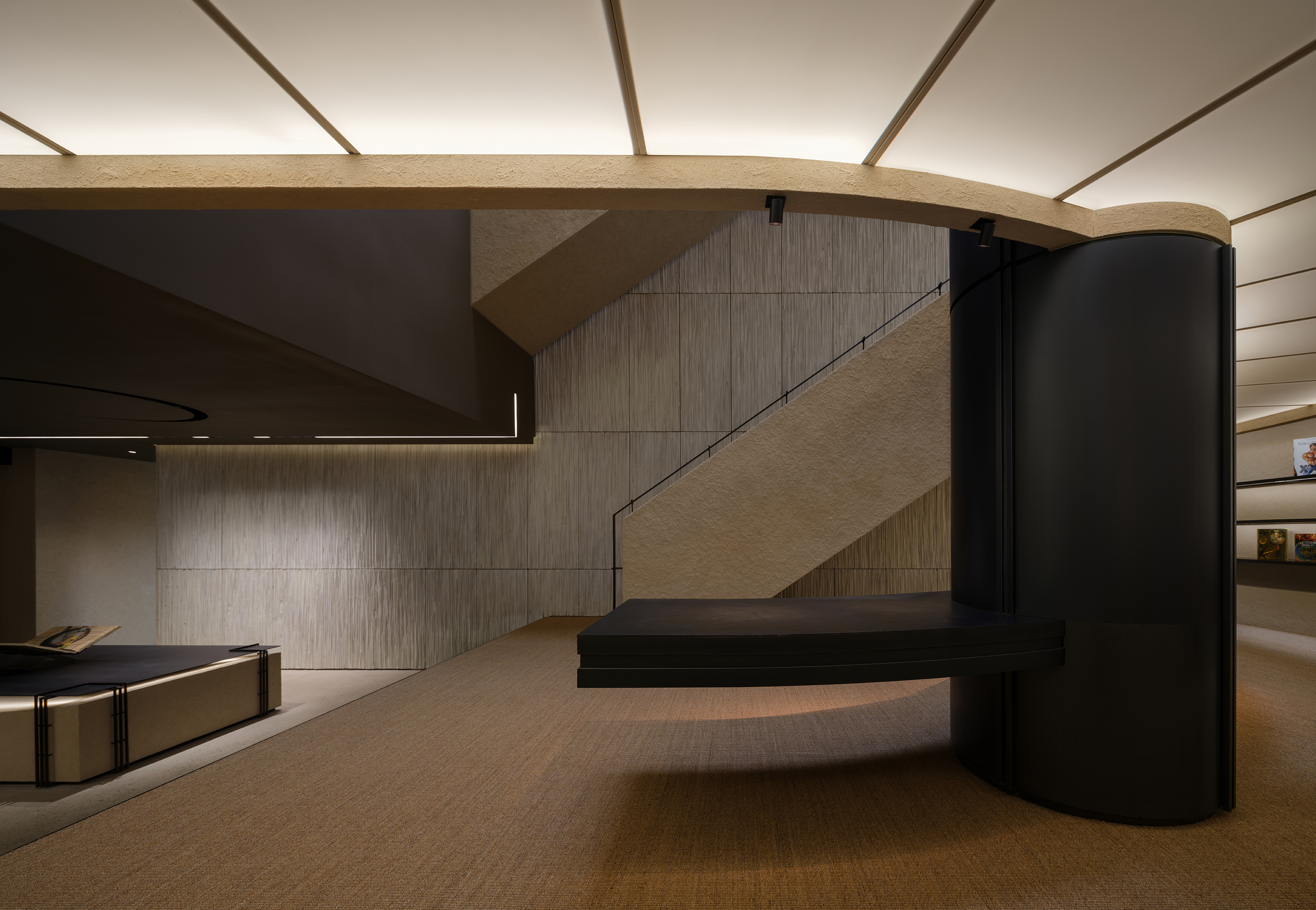 외부에서 내부로 연결된 전이공간을 따라 진입하면, 천창 사이로 들어오는 빛과 함께 책들이 줄을 이루고 있다. 입구에는 베스트셀러를 한눈에 볼 수 있게끔 낮고 넓은 테이블을 배치하였고, 바닥에는 자연 스러운 멍석이 깔려있어 어디서든 편하게 독서를 즐길 수 있다.