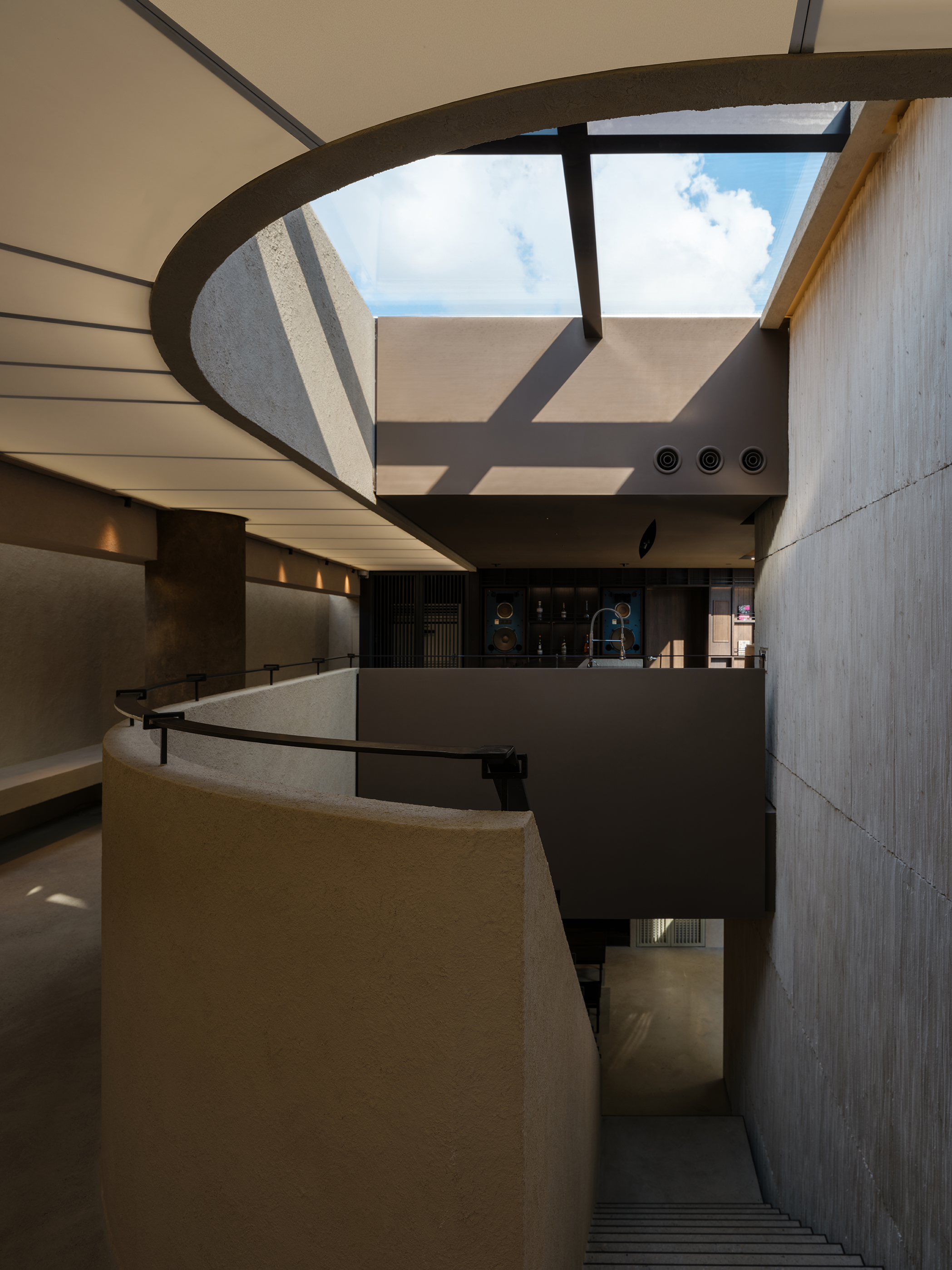 쏟아지는 챗살을 따라 2층으로 올라가면 곡선형 복도를 통해 자연스레 독서할 수 있는 공간에 도착한다. 중앙에는 낮은 선반을 배치하여 벽쪽에 배치된 책들을 한눈에 파악할 수 있으며, 모퉁이 공간에서는 편안히 독서할 수 있는 bed sest가 마련되어 있다.