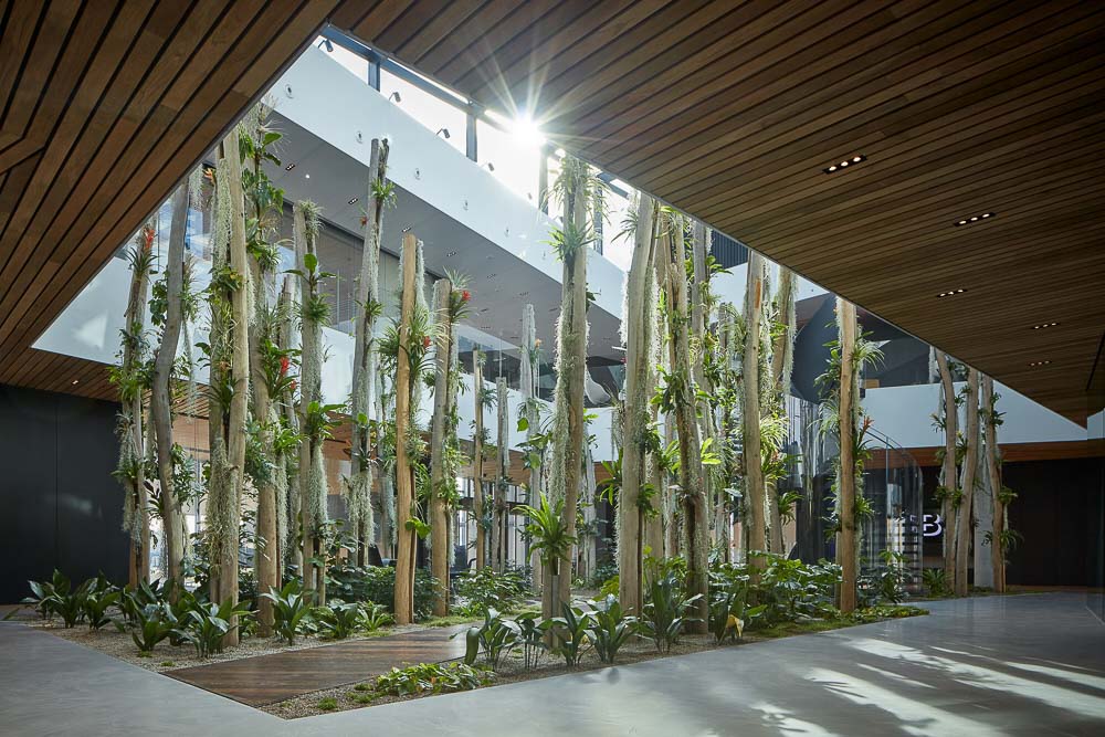 4개의 개별 건물은 차원 분열 도형(프렉탈)의 자기 유사성 원리에 따라 모양이 지정되었으며 기존 대지의 기하학에서 파생되었다. 이 접근 방식은 사무실 공간 유형의 요구 사항을 충족하면서 주변 거리의 특성과 고도에 따라 변화하는 반응형 건물 모양을 생성했다. 볼륨의 불규칙한 모양은 임의의 외부 입면 디자인이 특징이라기보다 실제로 내부 레이아웃과 건물 기능이 밀접하게 일치한다.