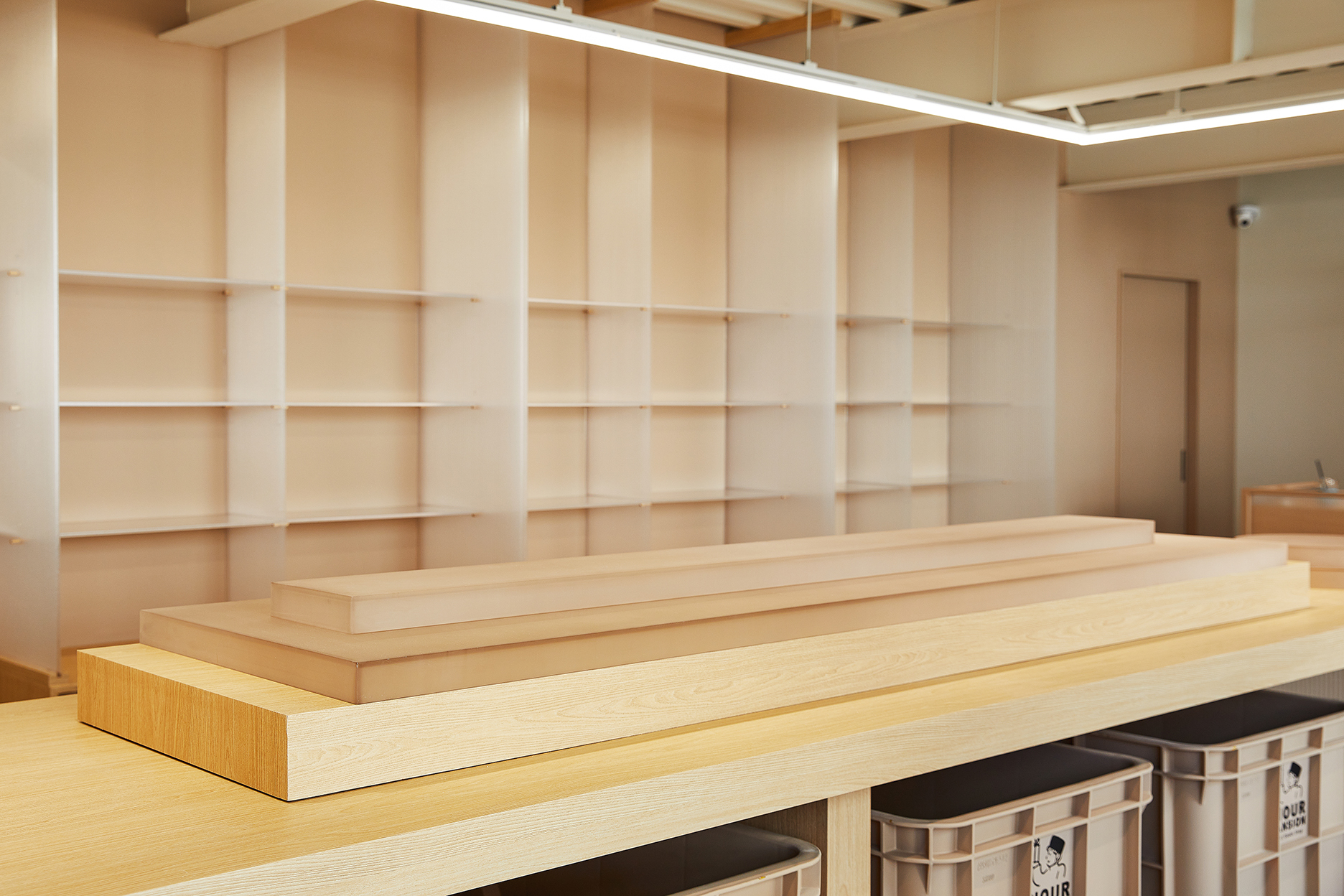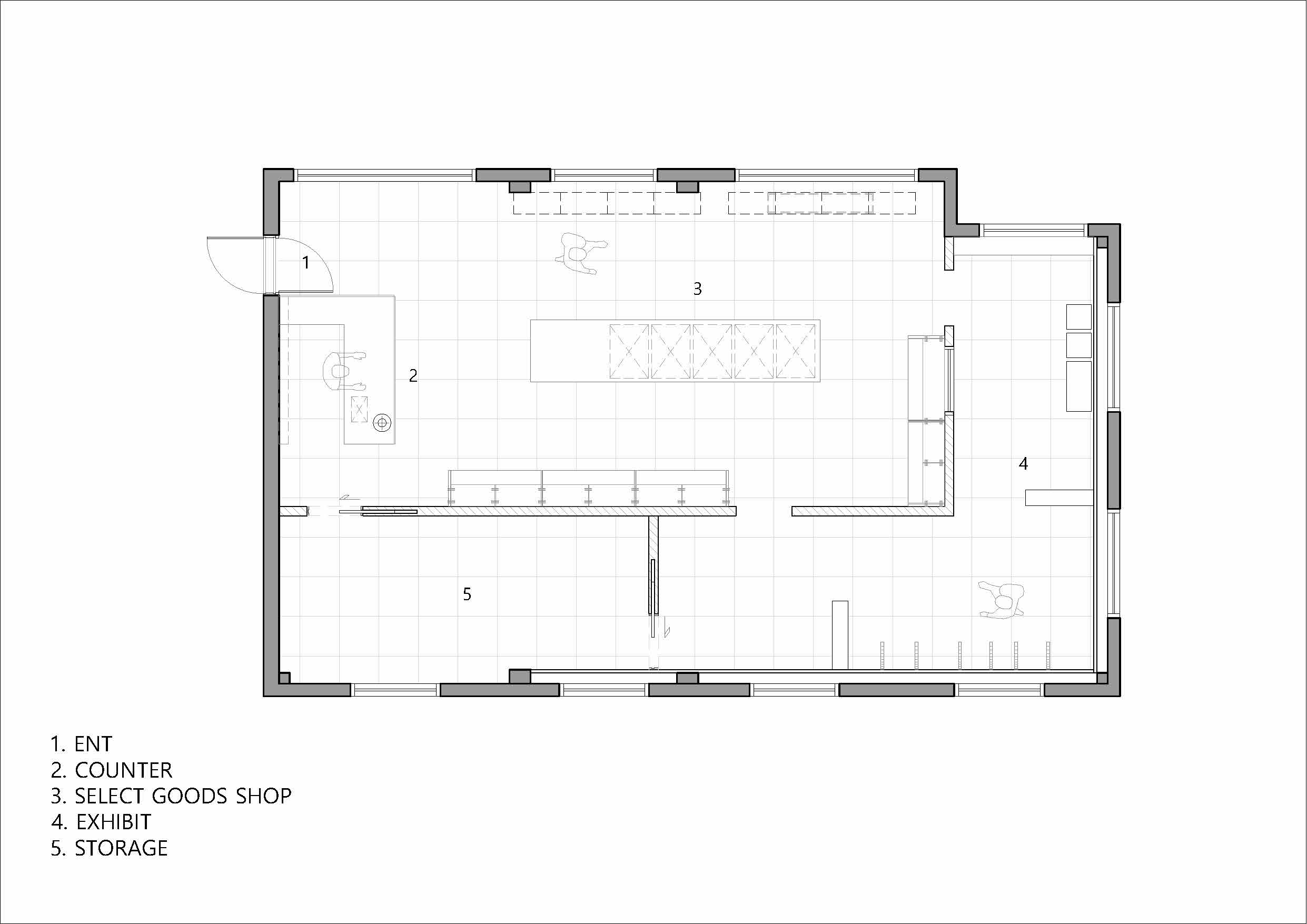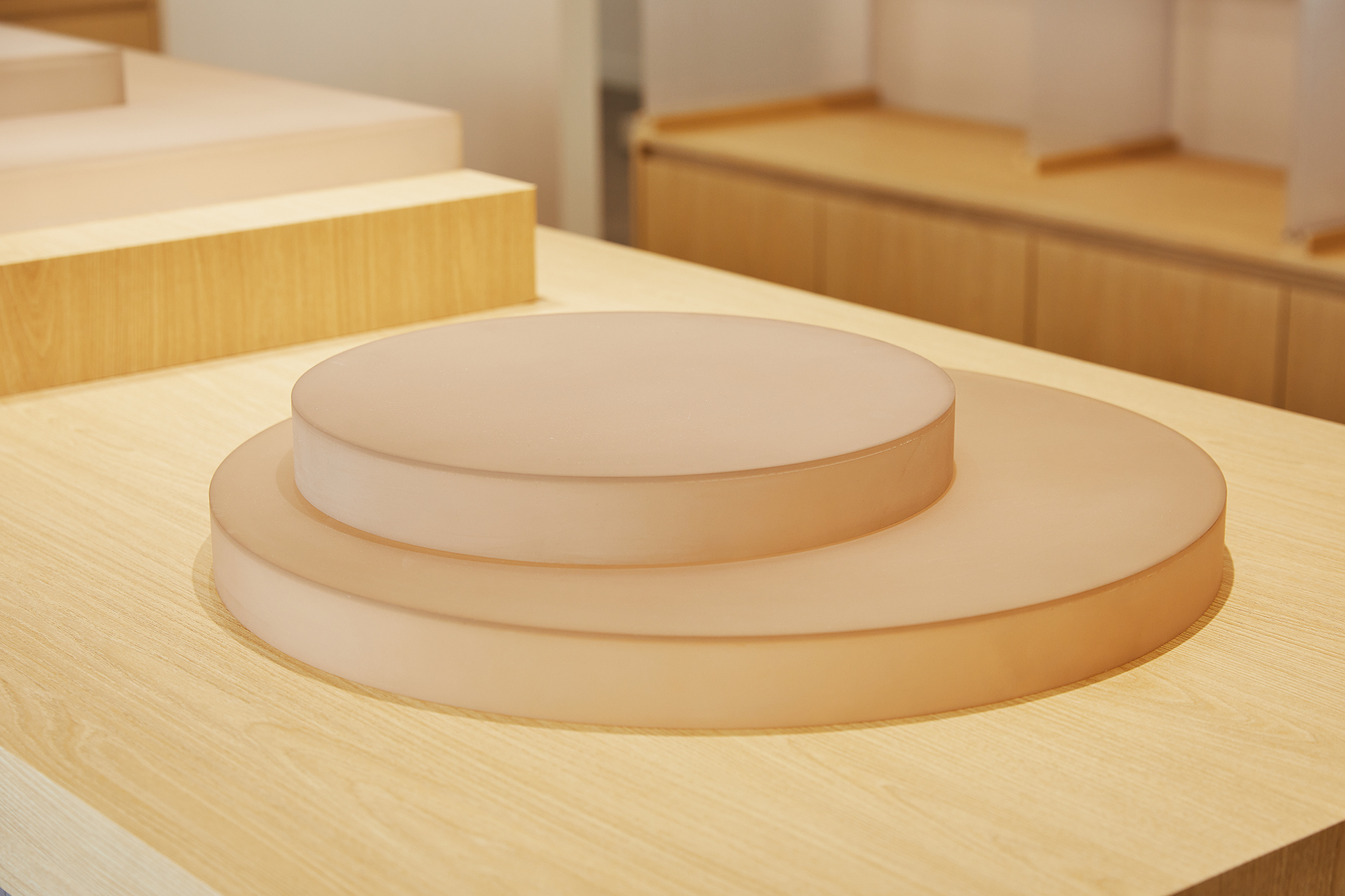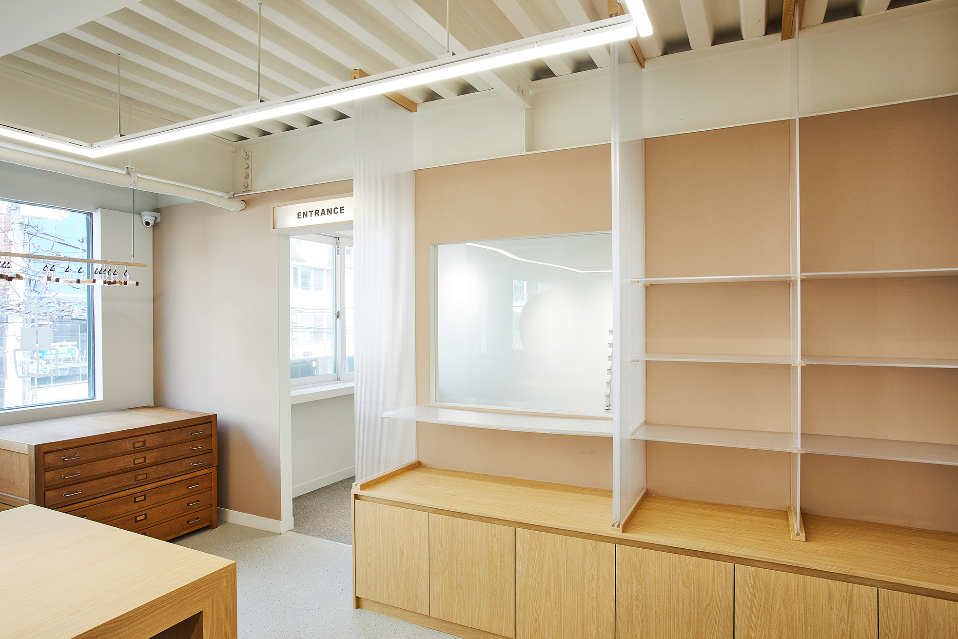 The atmosphere of the space and the contents of the space itself become the main characters. However, in the ever-changing sales and exhibition works, we sought concepts that would not only shine on the aura of the space itself, but also shine on them. The concept of Silhouette became our main direction and permeated every corner of space. For example, the works here give a different feeling depending on which direction you look at them. The silhouette of the work reflected between the polycarbonates as you enter the entrance causes visitors' curiosity rather than immediately revealing its value. The colors that spread along the unique polycarbonate grain, not just shadows, look like an abstraction from a distance. This is our wish to exquisitely express the change in revealing and covering, and at the same time, it is intended to allow visitors to look at the work in various directions. Our space adds that light to accommodate change.