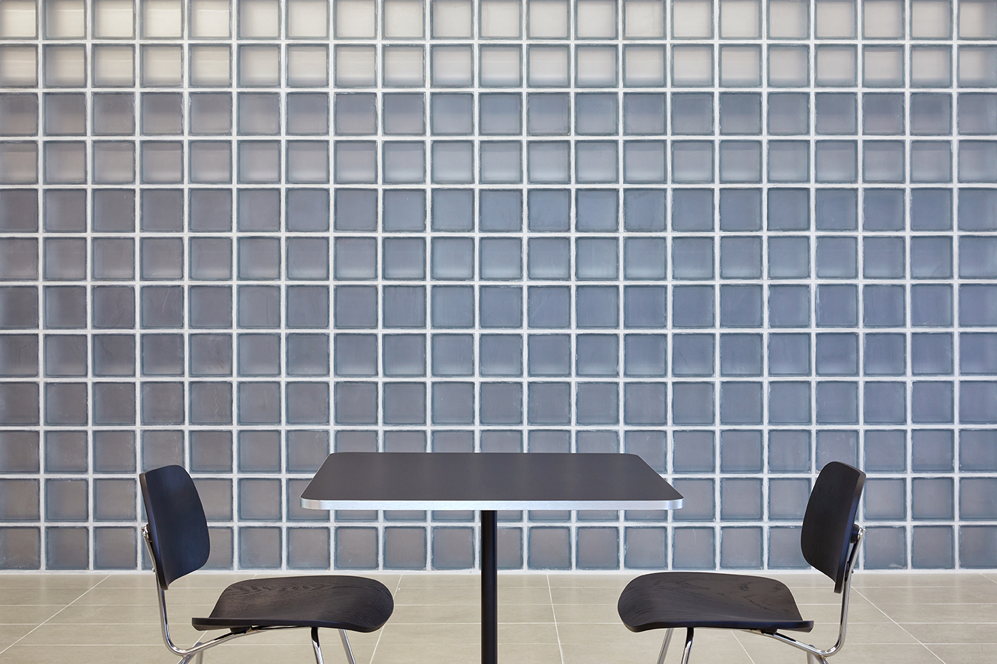 직선 유리 블록을 통해 시원한 감각을 제공하고 반투명 실루엣으로 내부에 있는 물체를 투사하여 소비자의 호기심을 유발한다. 또한, 천장의 그레이팅을 통하여 유리블록과의 연결성이 형성되어 안정적인 느낌을 형성한다. 공간 중앙의 카운터와 가구는 블랙을 사용하여 공간의 전반적인 무게 균형을 잡아주는 역할을 한다.