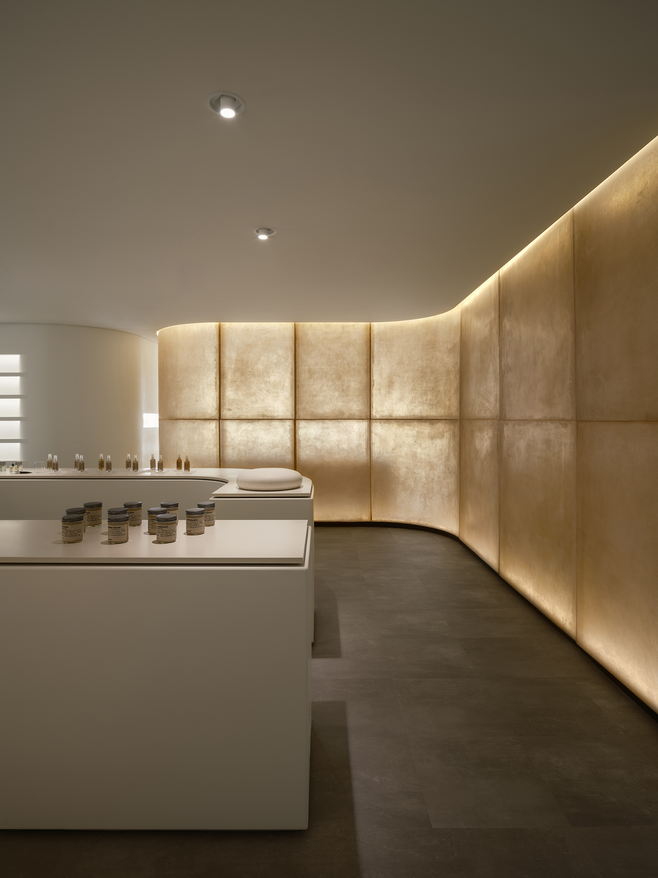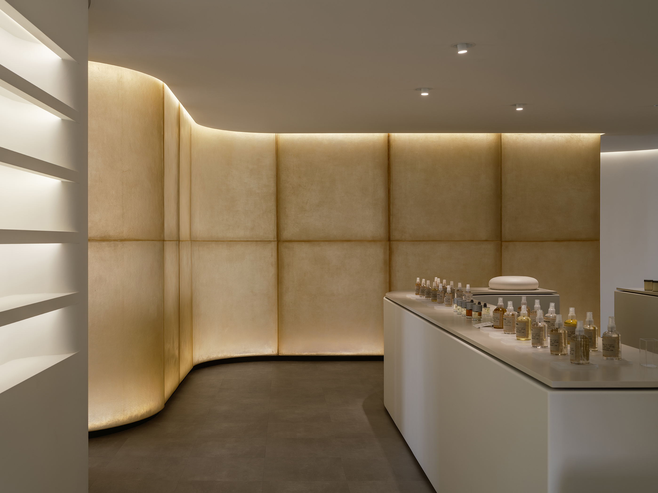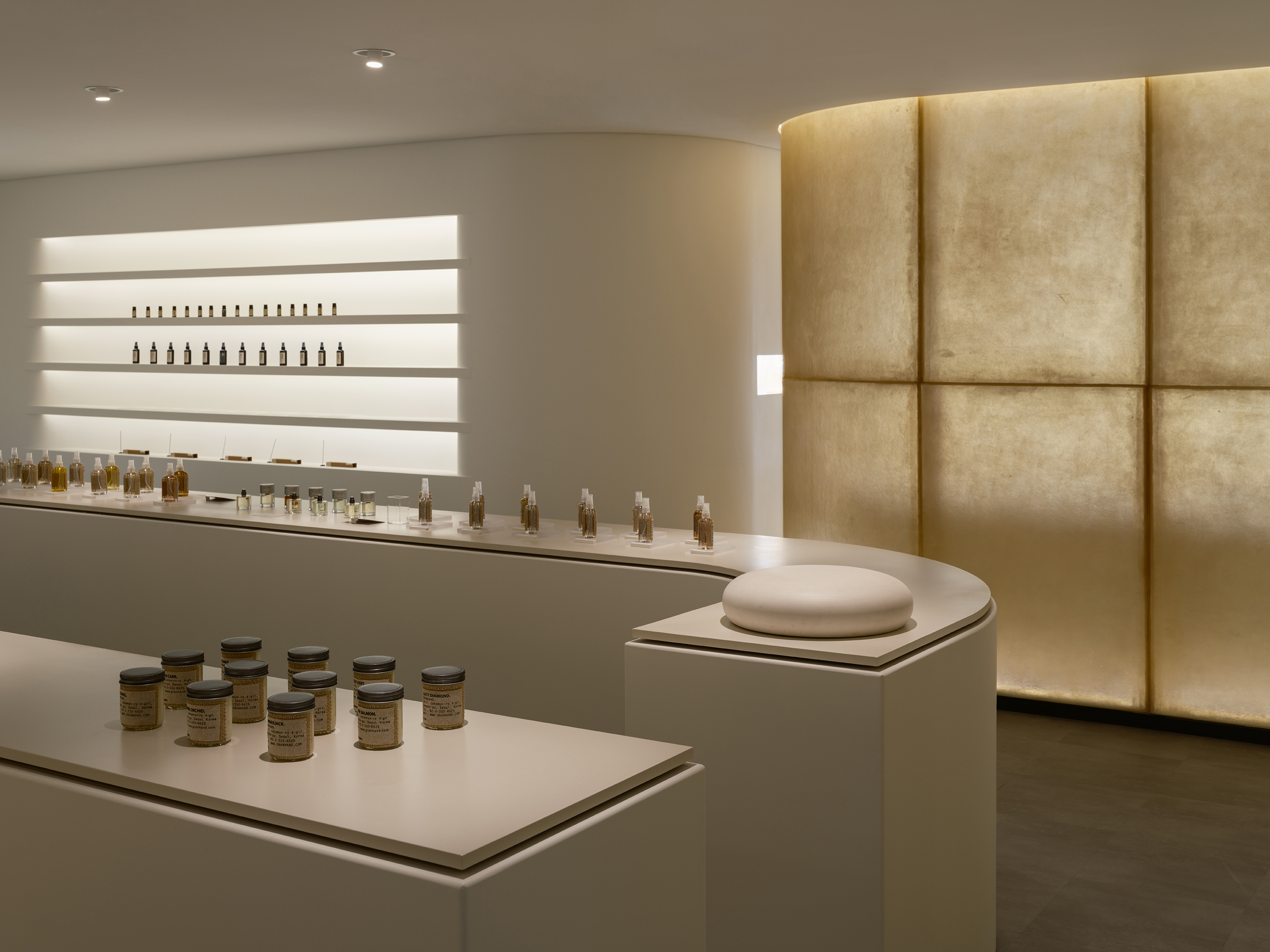 A place that sells incense may be a place that sells memories. "The scent of the blue dawn air," which I stayed up all night and smelled, "the scent of the grass" after the early summer rain, "the scent of the dry blanket" on a lazy Sunday afternoon, and "the scent of the mother's closet." I wanted to capture all these reverberations of memory in a simple way in space. It was the first sentence we defined and proposed, "Store that doesn't sell things." I wanted to put more meaning on capturing good memories there than buying only products when I came to Namsan Mountain with difficulty. This is an era where you can easily get anything delivered if you want. Therefore, it was proposed to sell the invisible "rescent of memory" held by the brand. Thus, the Grand Hand Namsan branch was divided into a space for testing and selling products and a "resting space" where you can stay in the calm air for a while and relax with a cup of tea. In this project, all design elements were taken out and taken out to create a space where only subtle reverberations of memory remained without further design being taken out.