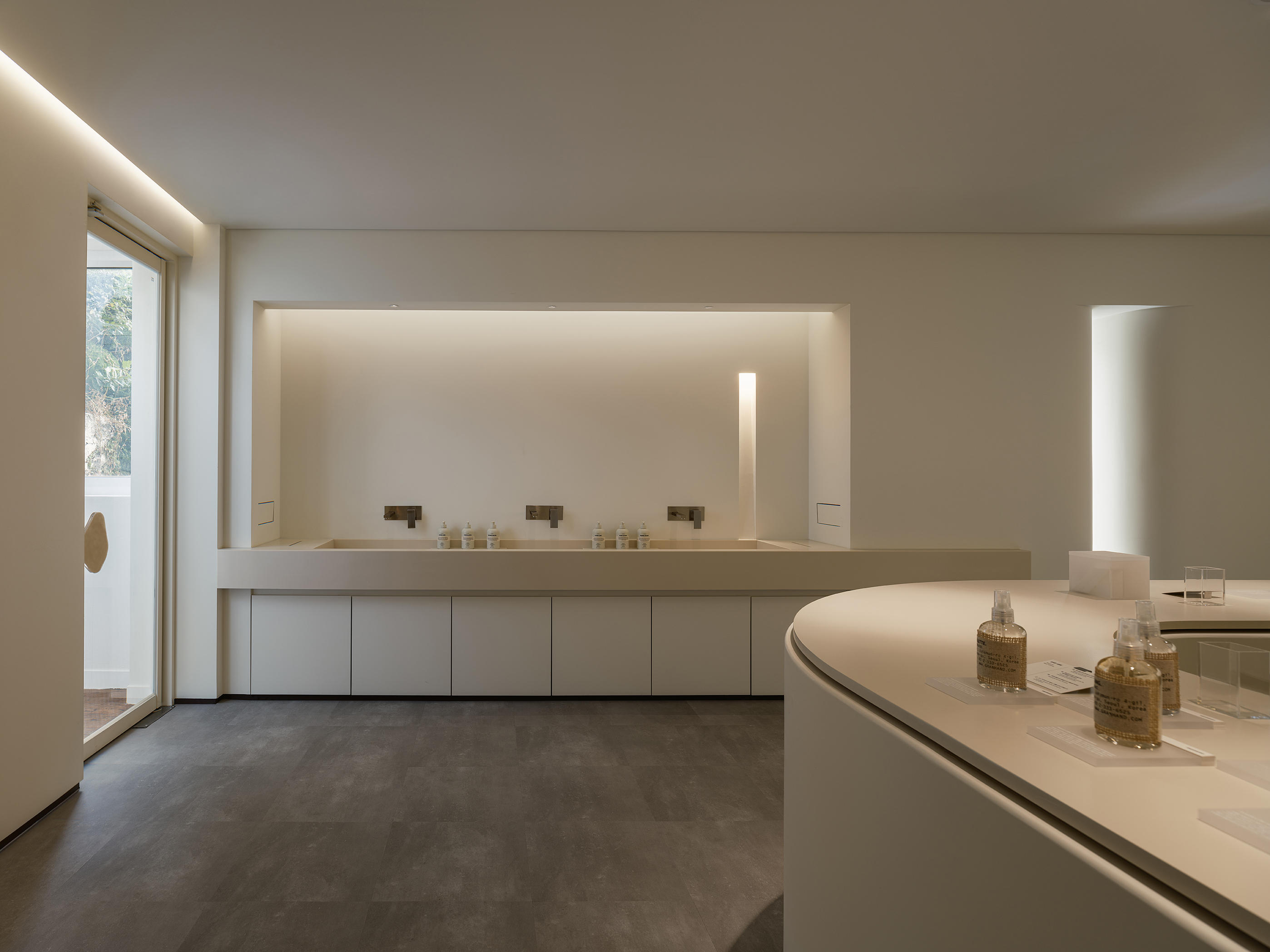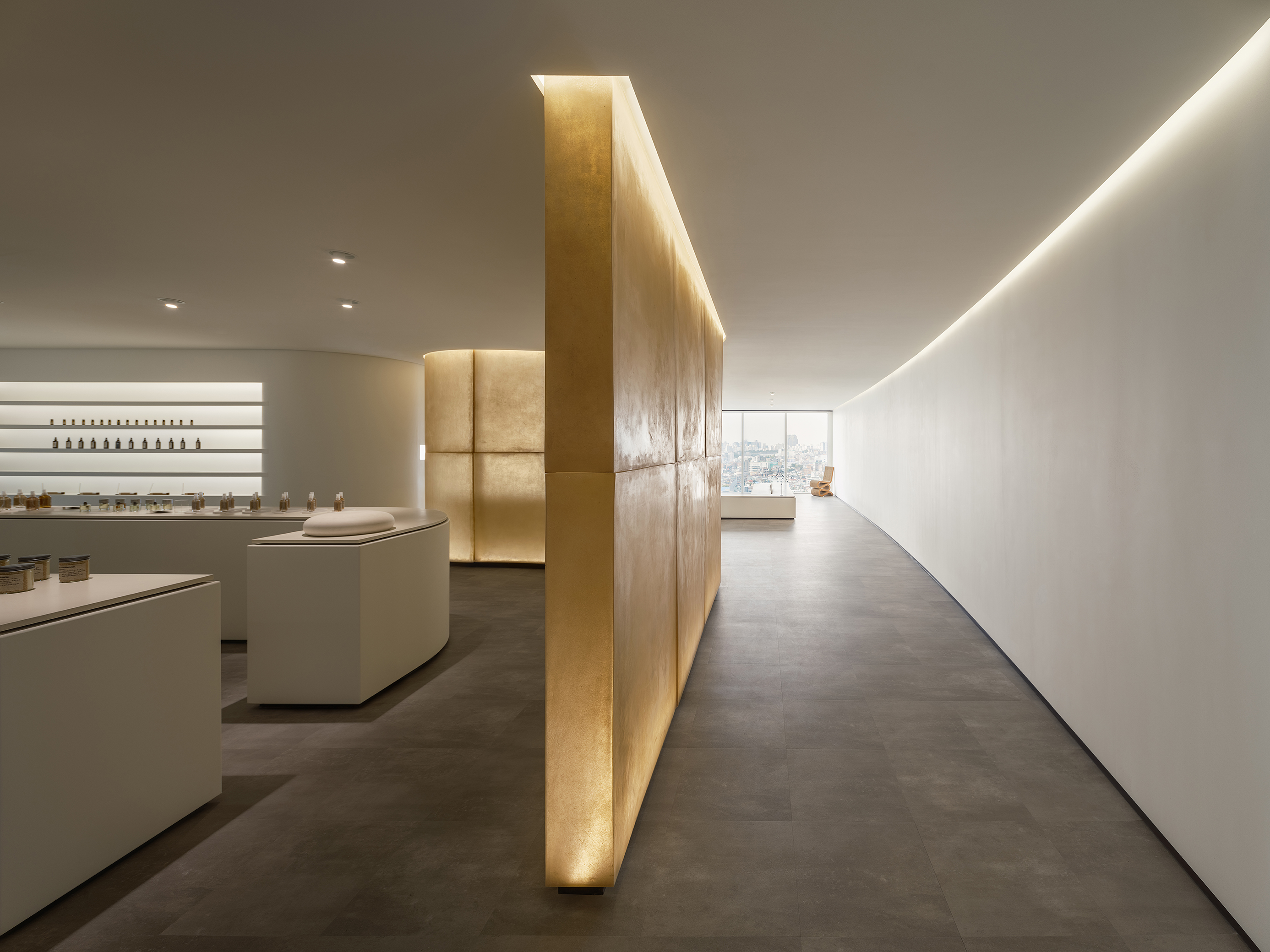 A place that sells incense may be a place that sells memories. "The scent of the blue dawn air," which I stayed up all night and smelled, "the scent of the grass" after the early summer rain, "the scent of the dry blanket" on a lazy Sunday afternoon, and "the scent of the mother's closet." I wanted to capture all these reverberations of memory in a simple way in space. It was the first sentence we defined and proposed, "Store that doesn't sell things." I wanted to put more meaning on capturing good memories there than buying only products when I came to Namsan Mountain with difficulty. This is an era where you can easily get anything delivered if you want. Therefore, it was proposed to sell the invisible "rescent of memory" held by the brand. Thus, the Grand Hand Namsan branch was divided into a space for testing and selling products and a "resting space" where you can stay in the calm air for a while and relax with a cup of tea. In this project, all design elements were taken out and taken out to create a space where only subtle reverberations of memory remained without further design being taken out.