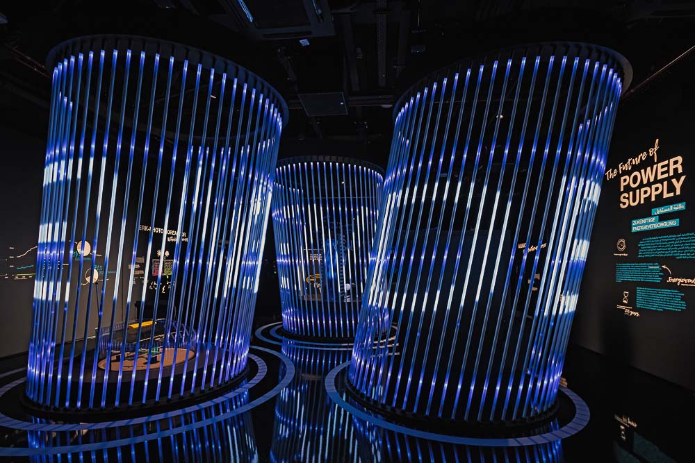 캔틸레버 큐브의 위치는 넓은 중앙 아트리움 및 이벤트 공간을 생성한다. 방문자 경험의 중심에 있는 이 지붕 덮인 수직 공간은 모든 기능 영역을 시각적으로 연결하고, 길 찾기를 도우며, 다양한 시각적 관계와 접근 지점을 생성하고, 많은 방문자 수 관리를 가능하게 한다. 방문자 동선은 사람들을 계속해서 테라스(입방체 공간 위)로 안내한다. 그들은 과거와 미래의 궤적을 보고 다른 사람들과 교류하며 엑스포 현장의 전망을 즐긴다. 사실과 허구로 디자인된 전시 공간(에너지 연구실, 미래 도시 연구실, 생물다양성 연구실)은 큐브 내부에서 개별적인 몰입형 경험을 제공하며 테라스 전시는 그룹형태의 상호작용의 장으로 초대한다.