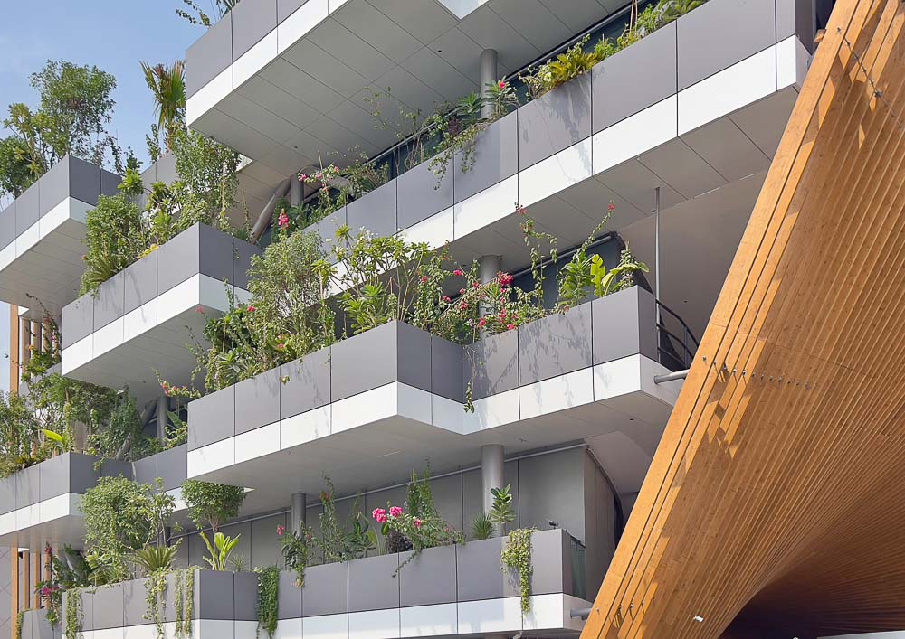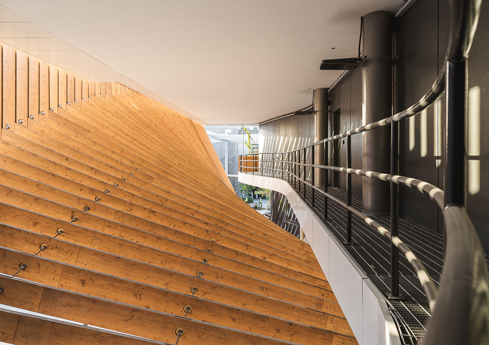 It is also a biophilic architecture that hosts a rich program whose balconies and rooftop are planted with intensive revegetation of more than 2,500 plants, shrubs, and trees. These “breathable”, drip-watered facades, naturally refresh - through evapotranspiration from the plants - the large outdoor terraces where having fun is encouraged.