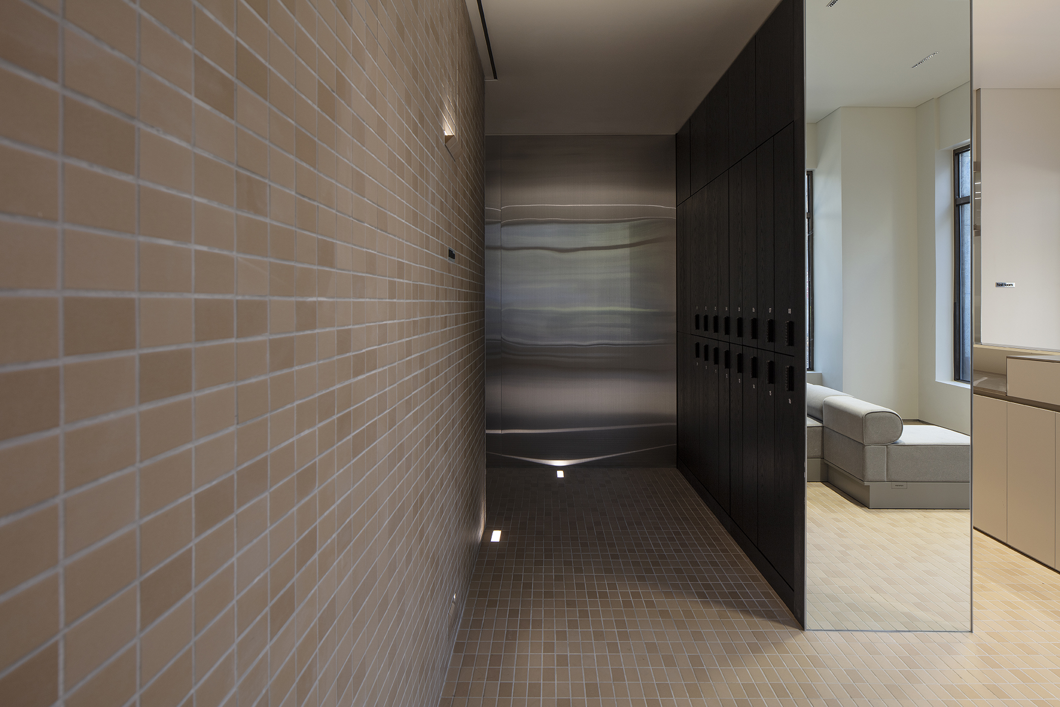 Each designer shares or occupies a limited space. We identified invisible boundaries, distances, and frequency of actions, and organized the space. The most important act among the acts that take place in this space is beauty. Beauty is an act for change. We wanted to maximize the changing experience through space. The external waiting space and the internal beauty space were separated, and the welcoming and waiting space and the hairdressing space were separated through a curved corridor. It was intended to give you a feeling of changing your mood as you move through space and space using dark passages. Even if we made tiles of the same color, we used tiles with different colors. The ceramic tiles that produce different results even when the same color is applied are regular and natural, just as each individual gets their own results through beauty. And tiles were used only as a flat surface, not a lump, as a decorative material for a flat surface. The space composed only of thin, wide and flat surfaces was intended to provide a sense of depth and a wider sense of expansion. Small fragments of light are embedded in it to guide the way.