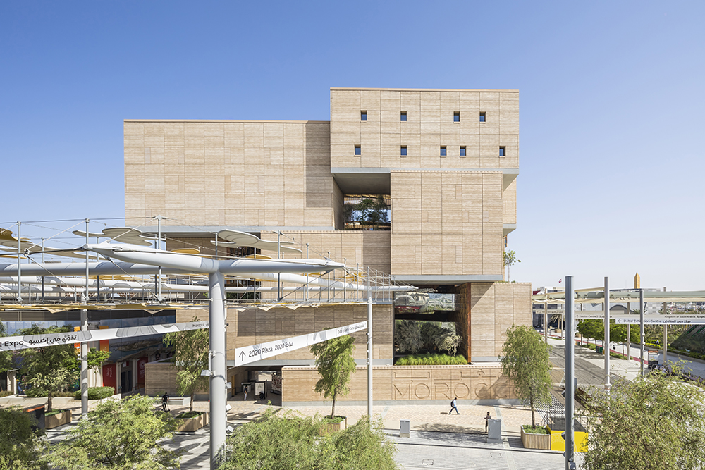 두바이 엑스포 2020의 모로코관은 전통적인 모로코 디자인과 건축 기법이 어떻게 현대의 디자인과 도시 개별에 접목될 수 있는지를 보여준다. 본 행사가 종료된 후에도 해체되지 않을 몇 안 되는 건물 중 하나인 모로코관은 전통적인 건축 자재의 기술적, 건설적 한계를 높은 수준으로 끌어올리는 것을 목표로 한다.