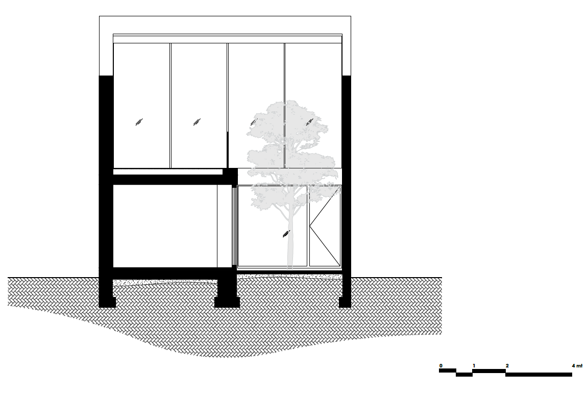 A small residence is inserted with originality among the houses overlooking the Brussel-Scheldt Maritime canal that splits the small town of Humbeek, part of the municipality of Grimbergen, in the province of Flemish Brabant in Belgium. In emphasizing the relationship with the canal, the project of this house draws upon an original spatial configuration based on the definition of a new relationship between the inside and outside. Humbeek Canal House was created to substitute a pre-existing building and makes the most of the available surface area by respectfully placing itself within the profile defined by the row of residential buildings facing the canal, complying to the surrounding gabled roofscape. The architect worked on the volume and distribution of space, emptying part of the original envelope, reversing the program by placing the living area upstairs and the sleeping areas on the ground floor, working on a careful redefinition of the boundaries between indoors and outdoors. The building recedes, resulting in an introverted facade that is organized around a new open space created by the volume subtraction. The project thus determines an unexpected spatial layout consisting of an entrance courtyard on the ground floor, which acts as a filter between the street and the house, matched by a small garden at the back of the house. It is a sort of “Japanese courtyard”. The idea is that of a small secret garden, to be discovered beyond the gate that separates it from the road along the canal. The courtyards also help to determine a spatial continuity between the ground floor and the upper floor, where the living quarters are arranged. The staircase that can be accessed from the entrance courtyard leads to the upper floor and unfolds adjacent to the entrance courtyard, leading to the discovery of the canal view. At this point, the living room projects and expands to the outside through a terrace that brings air and light inside. The relationship established between the interiors, the courtyards and the outdoor spaces helps to define an ideal connection between the two floors and to give the entire intervention a spatial continuity that reveals at every turn a new relationship with the outside.