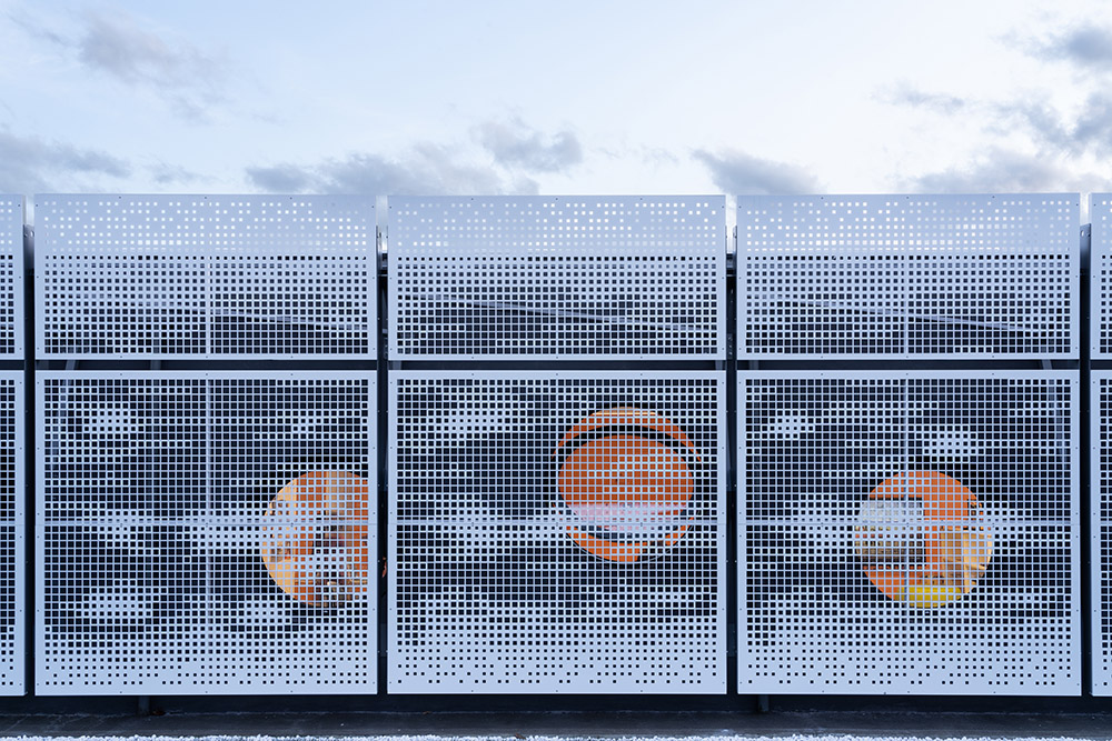 깔끔하고 우아한 선으로 이루어진 이 건물은 2층에 걸쳐 총 600㎡의 면적을 자랑하며, 다양한 크기의 천공이 있는 흰색 금속 패널의 미묘한 외피가 돋보인다. 구름의 희박성과 역동성에서 영감을 얻어 기울어진 매스는 경사진 지면과 회색 기둥이 특징인 유리 커튼에 누워 있어 주변 환경 속으로 녹아든다.