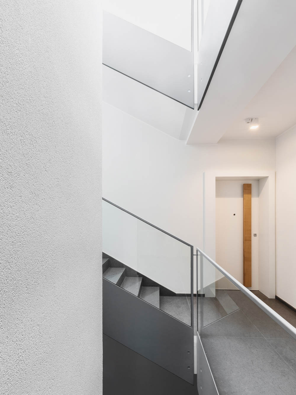 엄격한 선, 필수적인 형태 및 균형 잡힌 색상은 주변 건물과는 대조적인 단순하고 세련된 디자인으로, 교외 사회 주택의 품위를 회복시킨다. 건물이 지닌 그 우아함으로 합리적인 비용에 양질의 생활 공간이라는 주제를 건축 논쟁의 중심으로 되돌려 놓는다.