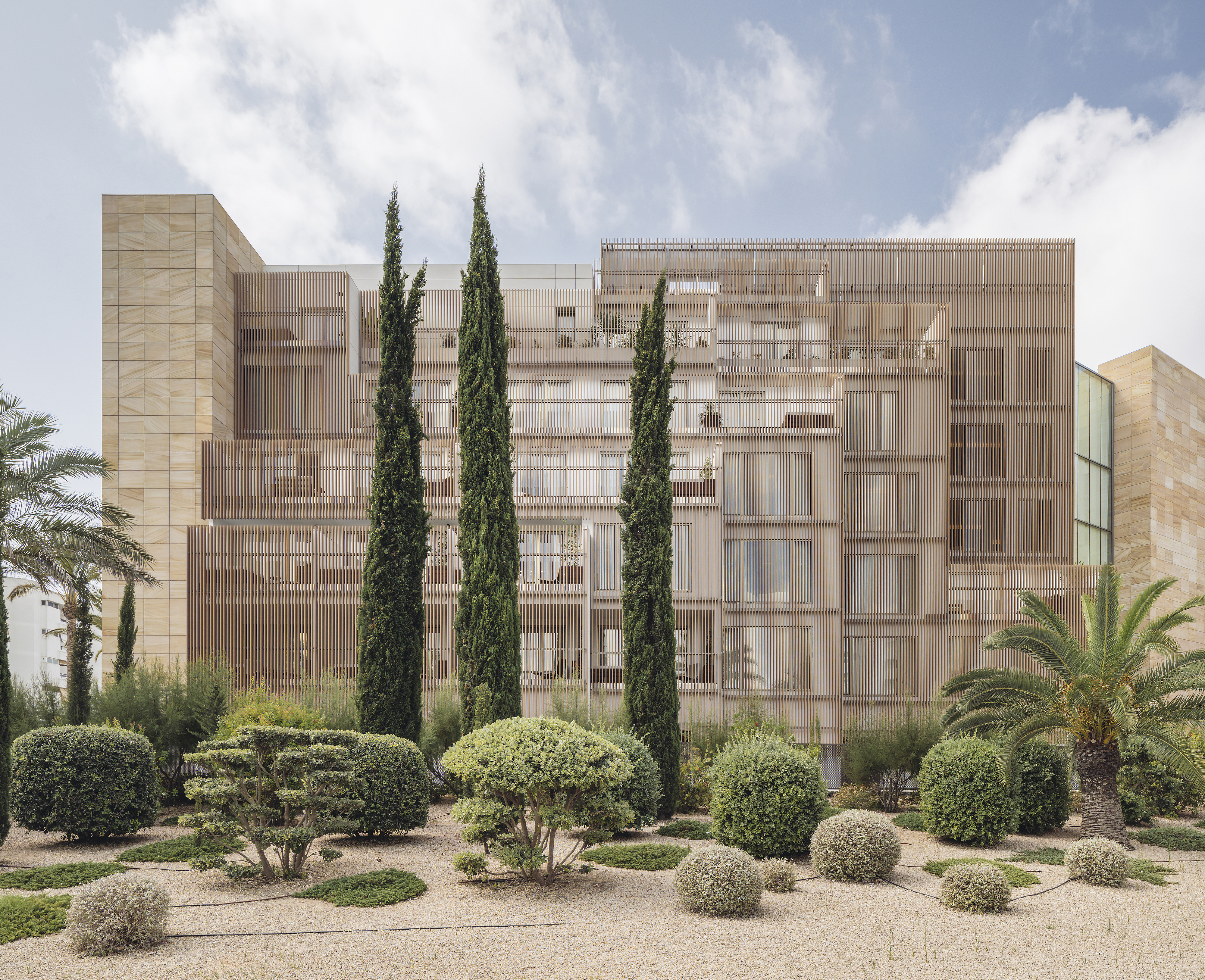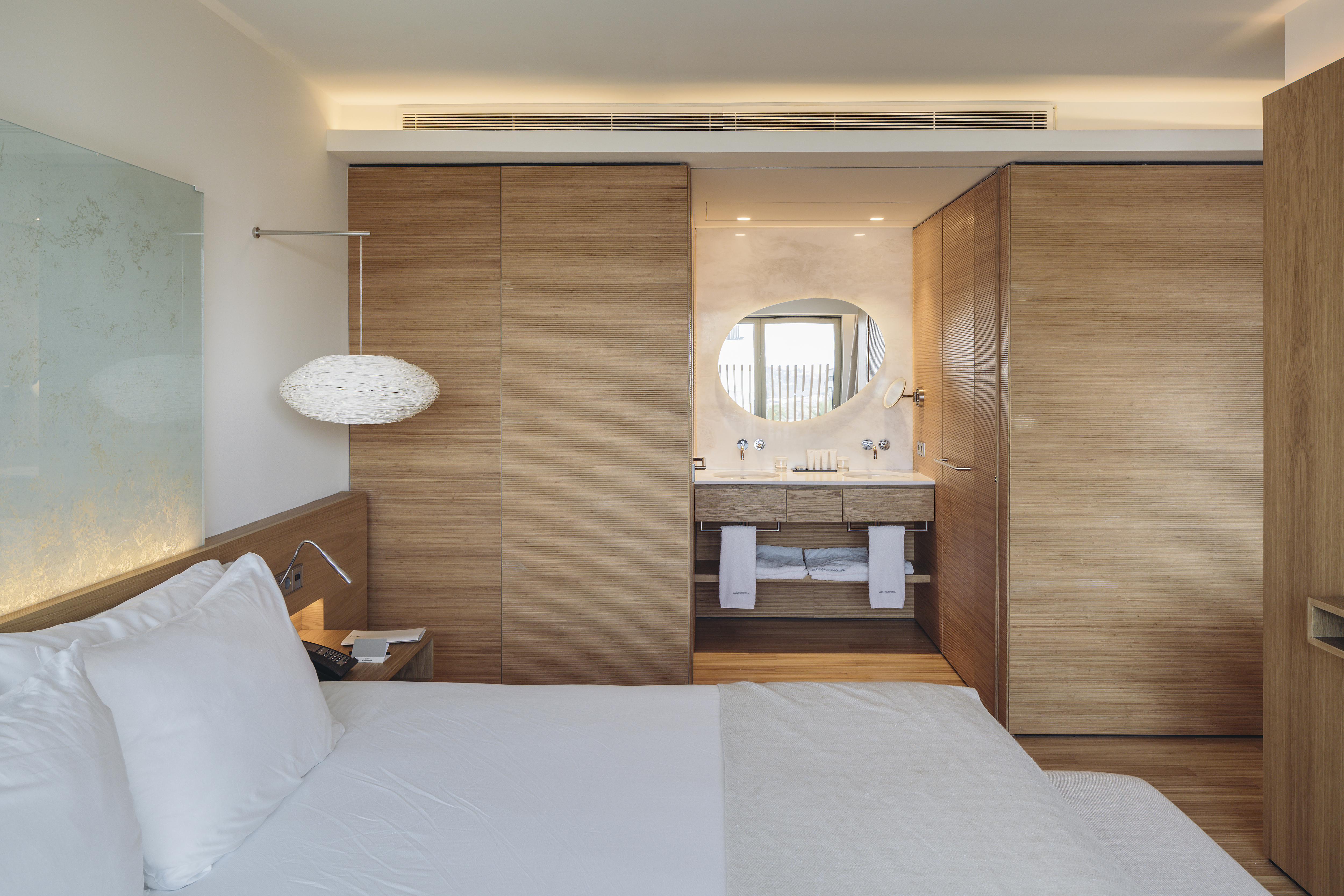 The project undertakes a complete renovation of the rear image of the building, with the construction of 30 new rooms and the remodeling of the facades. The new volumes are placed taking advantage of the original terraced section in order to produce vertical planes, whose slight displacement creates small outdoor spaces for the rooms. The facade solution is based on the extensive use of vertical slats of great depth, responding both to the need to control the incidence of sunlight and the surrounding views. This strategy provides a unified image for the hotel, which captures the nuances of light changes during the day. The interior design of the rooms integrates the jacuzzi bathtubs as one more element of the furniture, always placing them in the proximities of the fa?de or at the outdoor spaces.