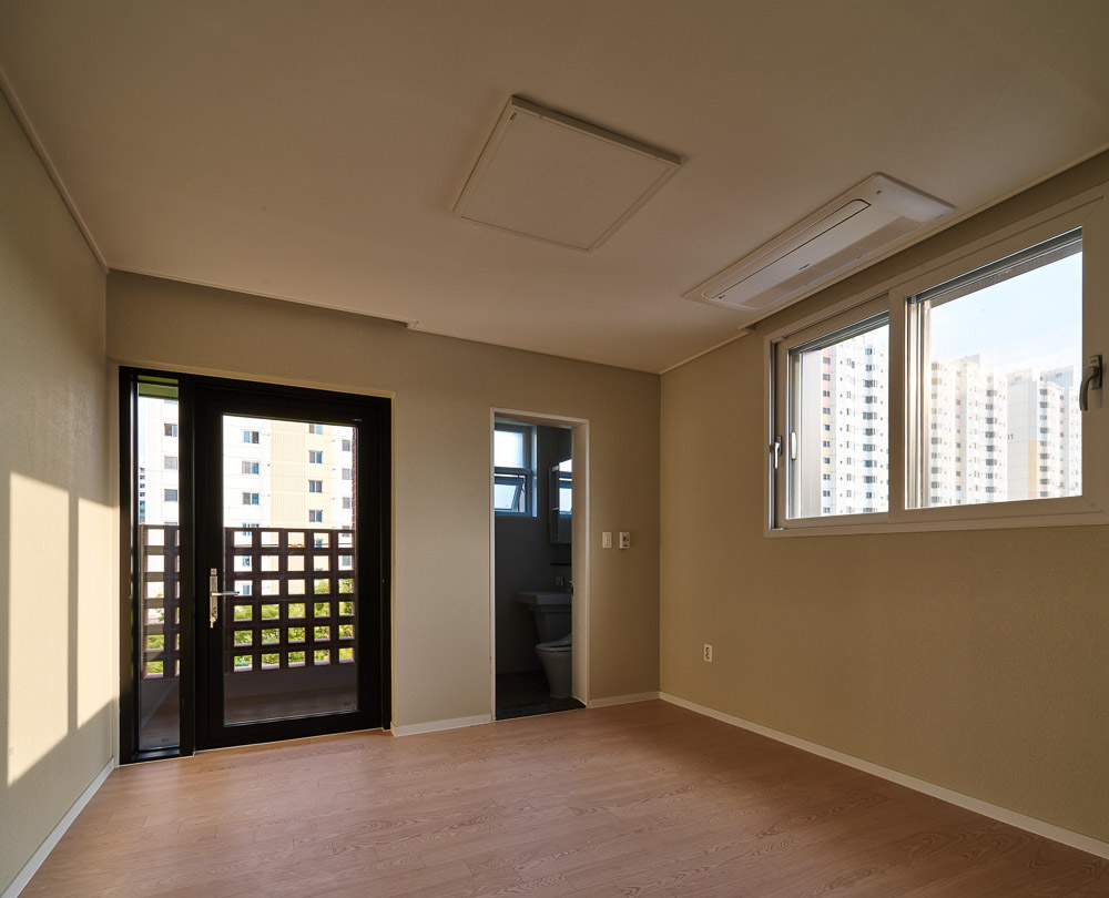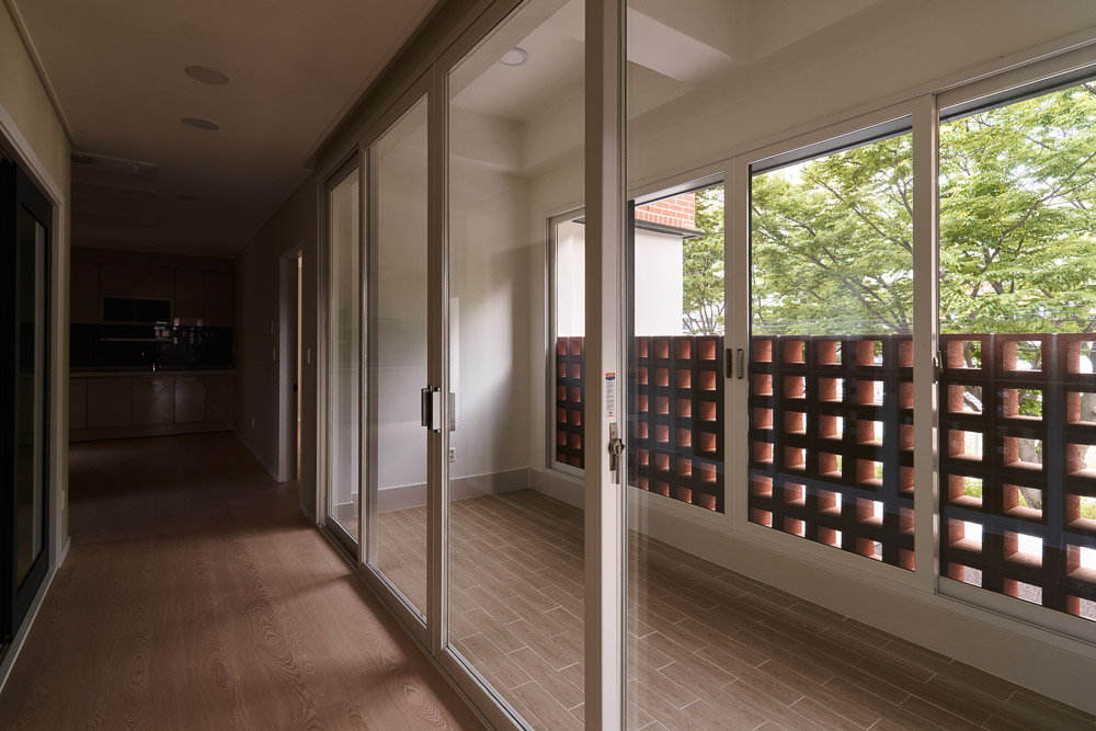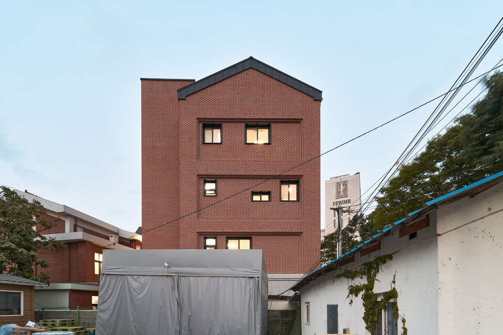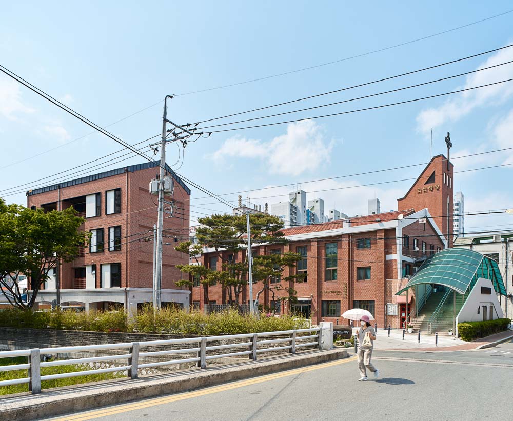 Gosan Cathedral is the oldest church in Suseong-gu, and belongs to the second deputy district of the Daegu Archdiocese. The priest’s office and nunnery were built about 35 years ago and have been in use since then. Over time, in the same way as we humans grow old, the buildings have deteriorated, and the function of the buildings have been lost. The one-way road from Dalgubeol-daero and the small crossroad connecting Siji 1st Bridge were relocated, which caused some congestion. There was a large amount of parking on the surrounding roads, which aggravated the congestion. There were no parking spaces at the cathedral, so an alternative was needed because this added to the surrounding congestion. In the plan to extend the priest’s office and nunnery, we worked on solving the parking problem to some extent, which has always been a concern, and to improve the lost function so that the clergy can engage in pastoral activities and the retreatants can concentrate on their prayers and work in the cathedral. Fortunately, there were beautiful things other than congestion around Gosan Cathedral. It was not easy to put something new in this familiar and comfortable place where the Maehocheon Stream flows to the south and there are beautiful green trees around Seongmodongsan(hill) and the old church. By revealing the pillars and beams on the exterior wall, affinity with the existing building was naturally enhanced. The use of stone and arch to suggest stability and religious traditions, and to emphasize the purity and innocence of the clergy and retreatants by using pure white cotton, expresses a new change from familiarity. The priest’s office and nunnery in the Gosan Cathedral has reflected the sentiments of users in the plan as much as possible. The parking problem was solved to some extent by configuring a piloti-type parking lot, and the building design included use of the narrow yard. For the exterior, clay bricks and a sloping roof were employed to bring the building into harmony with the existing cathedral, and blocks and white surfaces were used to incorporate a modern sensibility. In addition, the interior was zoned for each floor to ensure maximum independence within the collective building, and the bedrooms were arranged to face Maehocheon Stream to the south.