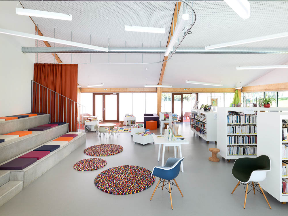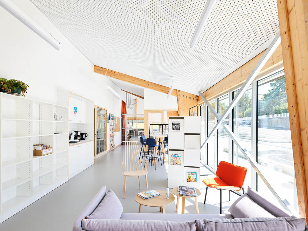 The site chosen by the municipality was next to the Town Hall, right in the middle of the town, where other public amenities are located (Town Hall, bakery, restaurant, etc...). The challenge was to create a place where multiple activities and publics could cohabitate and find synergy among the activities organized by the new cultural center.