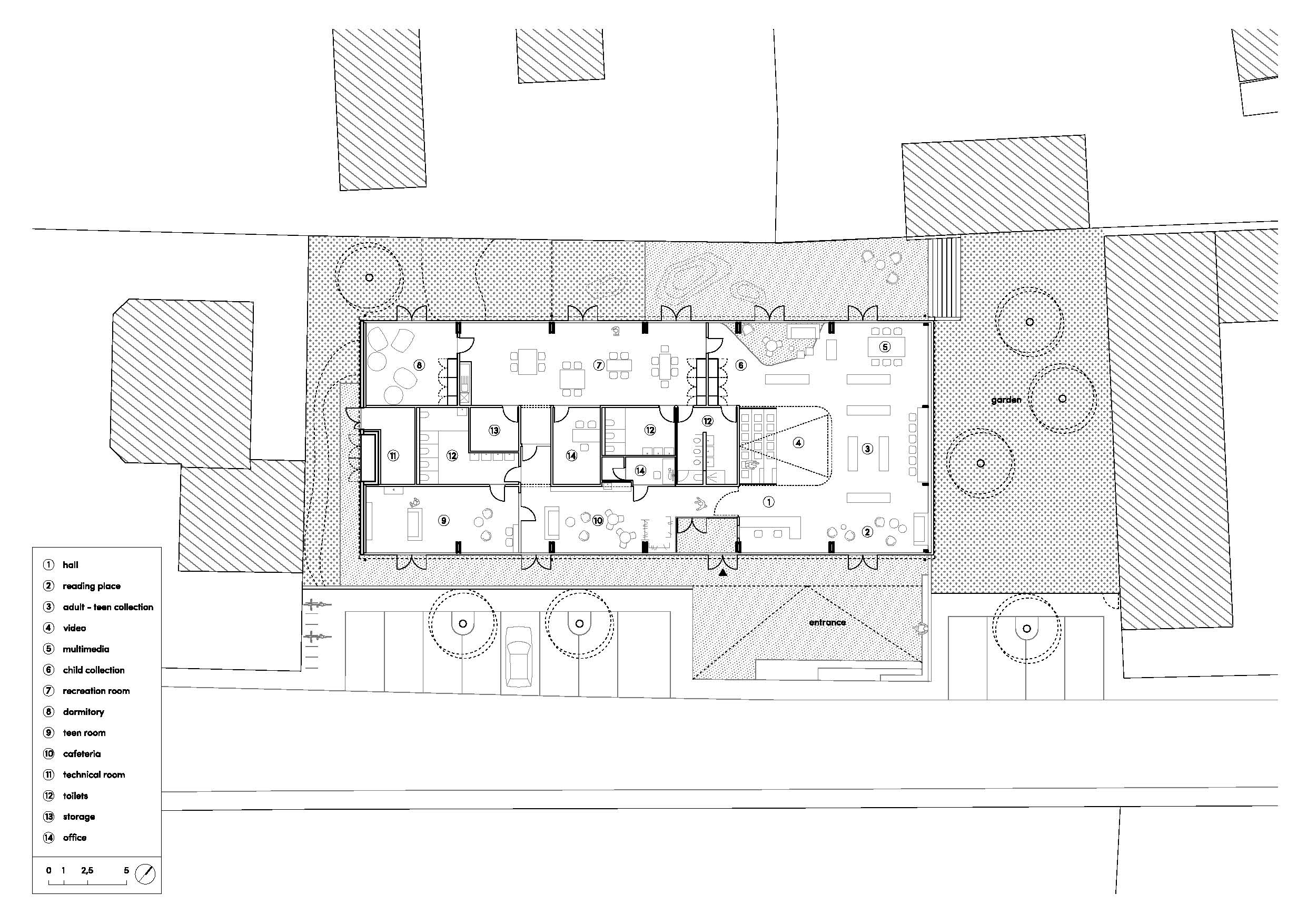 초기 아이디어는 일상과 특별한 날, 흔한 것과 특별한 것, 보통과 예외가 공존하고 상호작용해 그 이상의 것을 만들 수 있는 ‘또 다른’ 종류의 하이브리드 공간을 만드는 것이었다. 지나가는 사람들에게 내부를 보여주기 위해 바깥쪽과 내부 코어에 서비스 영역으로 프로그램을 구성했다. 공공공간을 건물의 안으로 끌어들이기 위해 공공성을 가진 다목적 홀, 청소년 공간, 멀티미디어 도서관을 도로와 가까이 배치했고, 사적 프로그램인 어린이 공간 등은 뒤쪽의 정원과 마주하도록 배치했다.