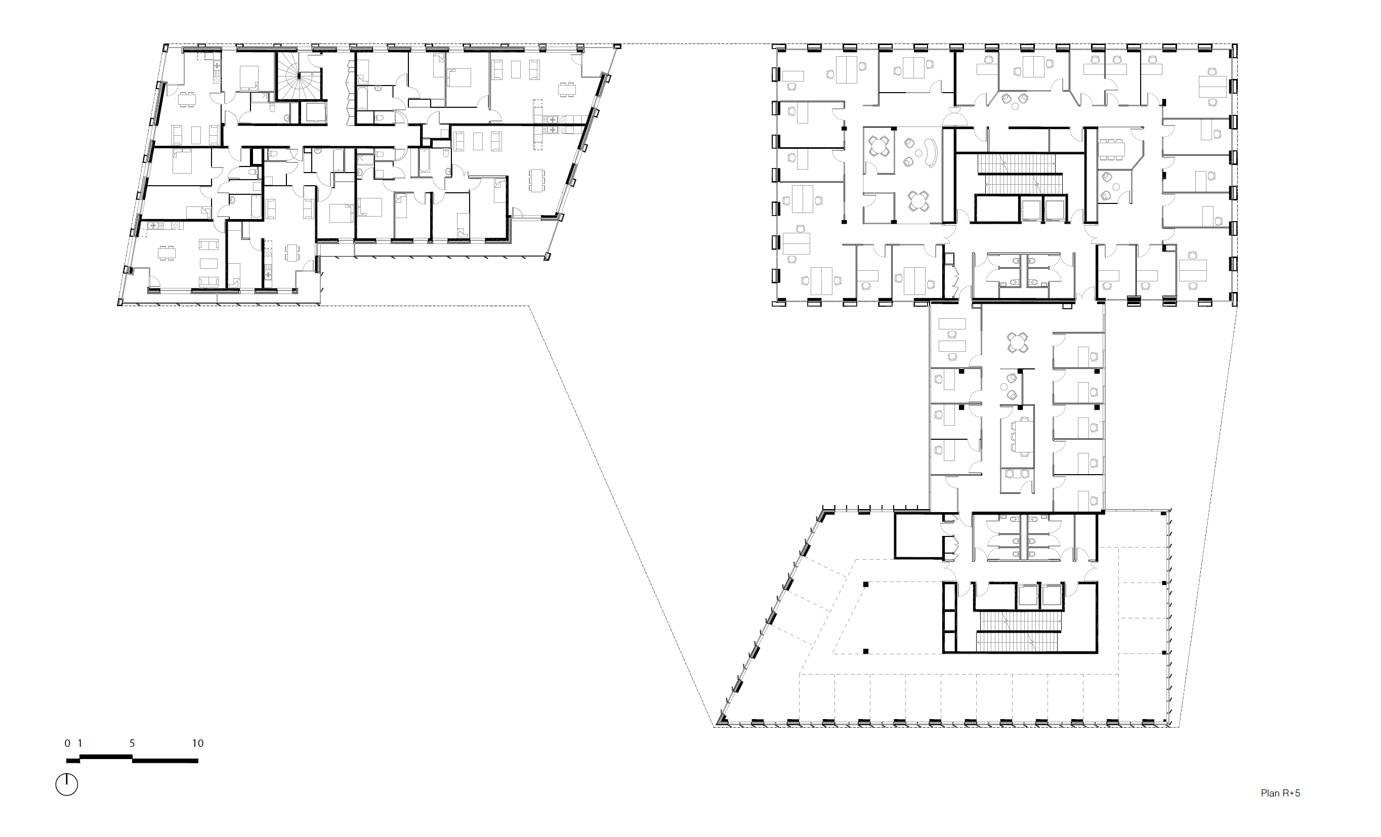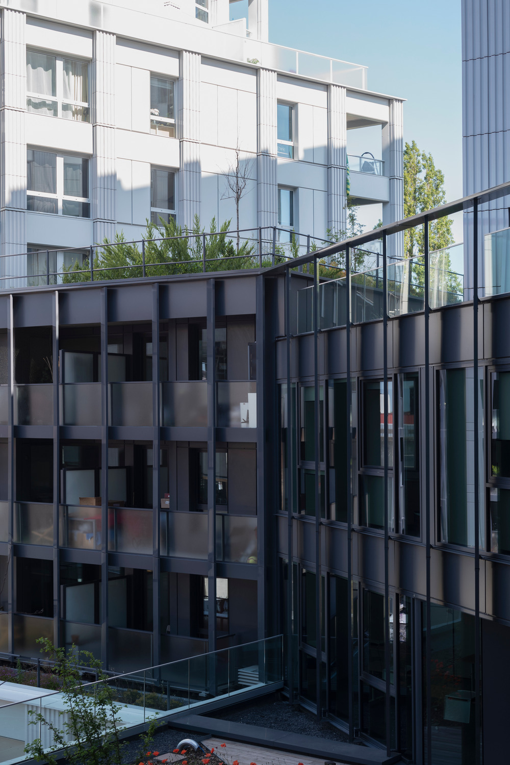 The project is situated on a plot in a strategic location at the entrance to the city of Lille, at the corner of Rue de Cambrai and Boulevard de Belfort. The building emerges from the ground along both of these roads in three distinct sections: the offices, the headquarters, and the housing, all tied together with a shared foundation. The Partenord headquarters are situated at the corner of the plot, shining like a beacon over the metropolitan area and ensuring its visibility throughout the Lille region. The project offers a duality between the bold urban façades and the centre of the block, which is sheltered from the city's hustle and bustle and is an ideal place for users to relax. The multiple balanced outdoor spaces offer pleasant settings for users, tenants, employees, and retailers, looking out onto an environment of biodiversity. The building is adorned with various sizes and styles of terracotta cladding. A feature is created along Boulevard de Belfort, like an urban window with three sides of reflective glass. This mirror onto the city amplifies the comings and goings of local residents. More than just architectural touches, the systems put in place offer functional qualities tailored to each project. The simple urban façade establishes structural and functional integrity to meet project requirements in the clearest possible way.