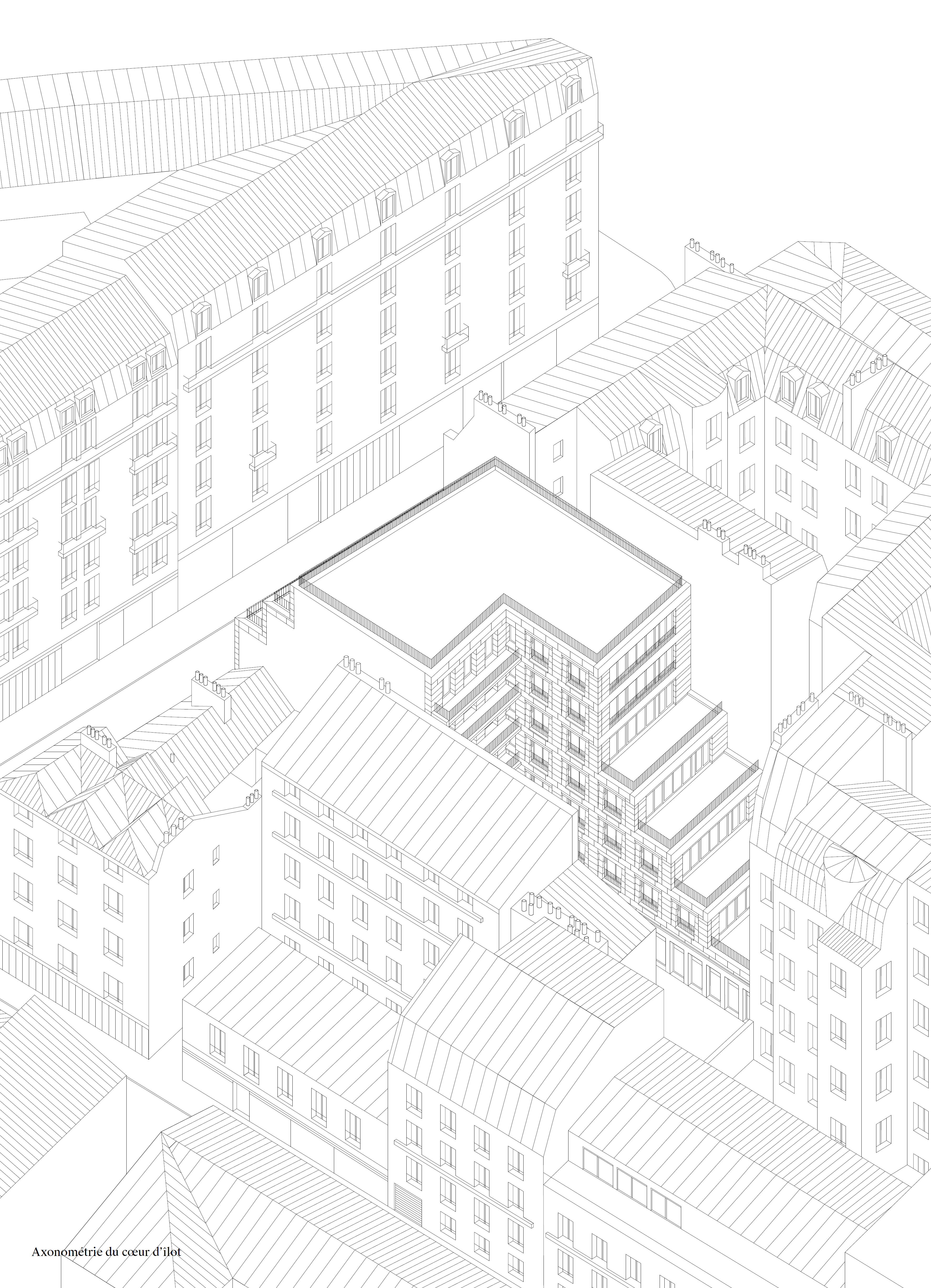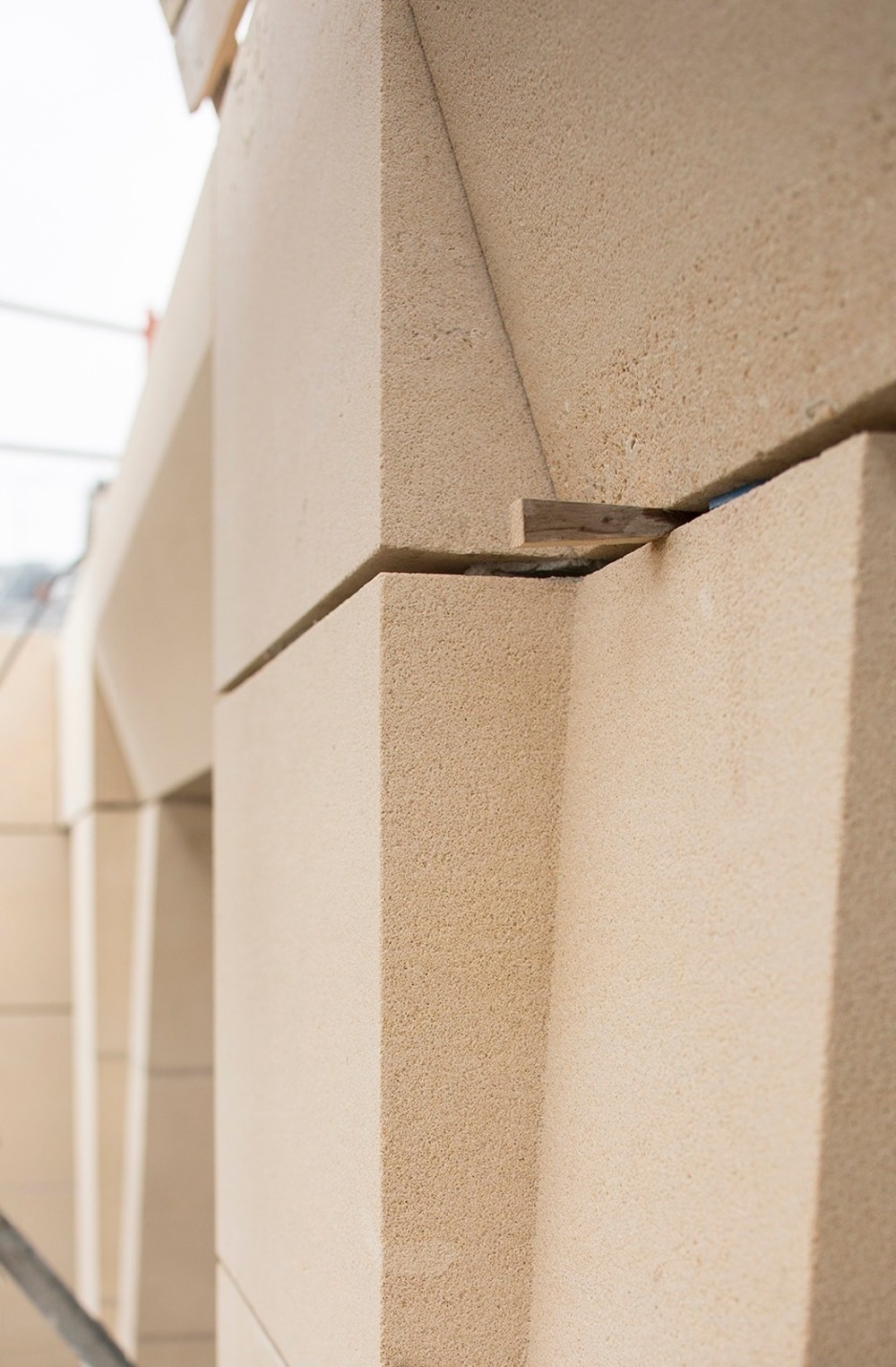 The science of stereotomy (art of cutting and assembling stone elements) leverages the significant technical advances associated with the building of cathedrals. For the project architects, an awareness of the life cycle of stone—extraction, transformation, use, reuse—gives new relevance to the architectural form and to construction details. As opposed to ornamentation by addition, the design of the window openings proceeds by subtraction, inspired by the Haussmannian pursuit of an economy of means and materials. The modernature hereby invokes history in order to innovate.