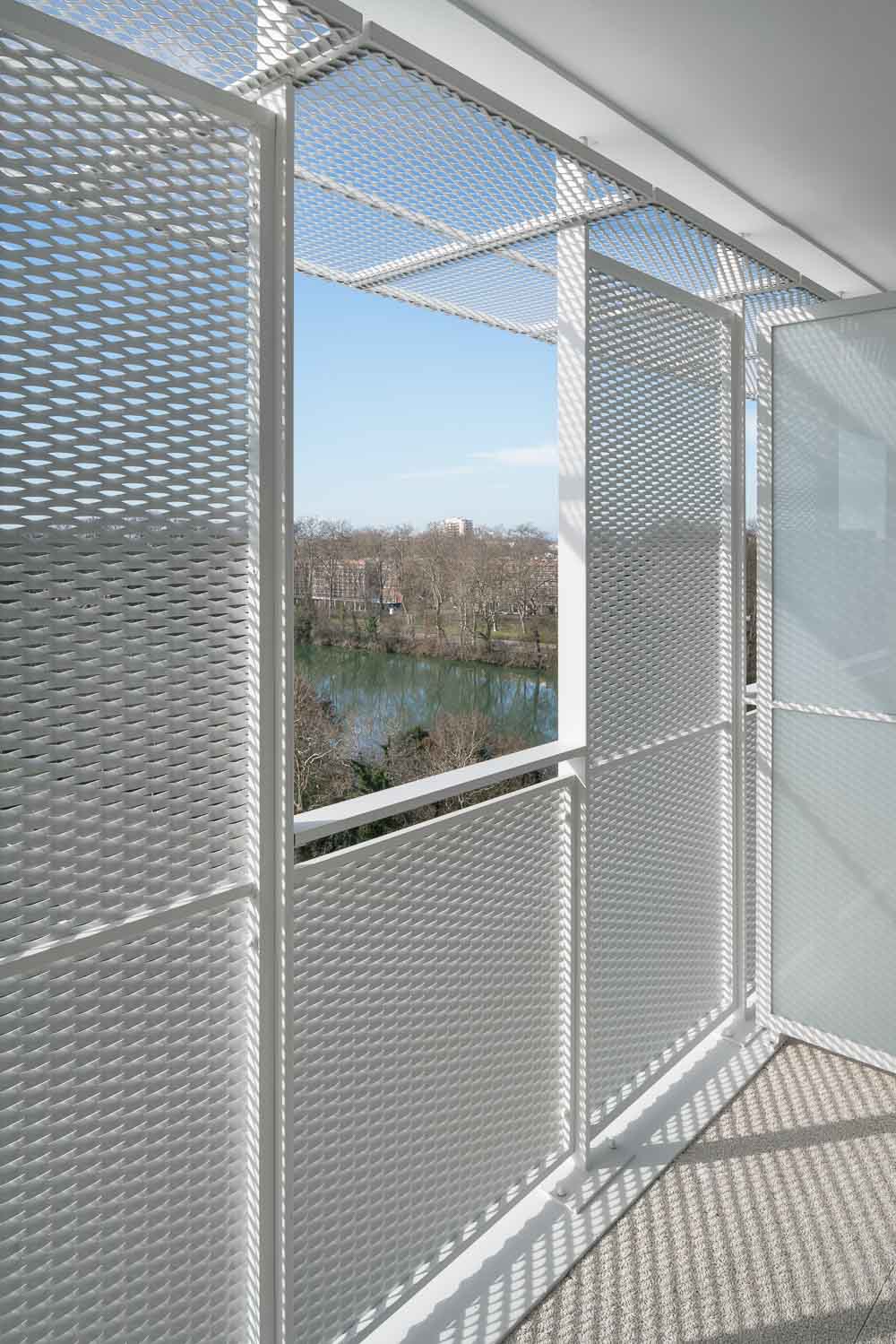 At the last levels, only a shade covering the entire width of the balconies protects the inhabitants like a pergola. Acting as foliage, these shades have been thought and designed to provide a similar comfort to that offered by the cover of a tree on a sunny afternoon.