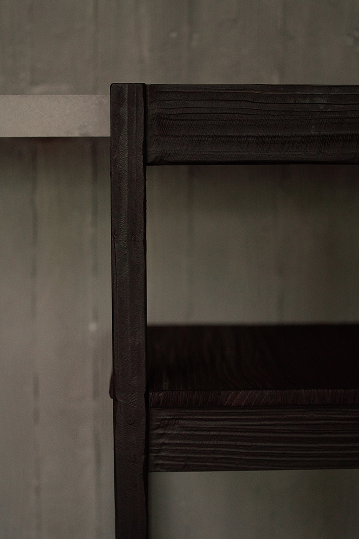 As competing bold colors may create unwanted clutter and bury the focal green, an achromatic color was elected for the interior. The walls, floors, and even furniture are finished with tones of gray in concert. This sense of unity from floor to ceiling, not only, enhances the views of Metasequoia Road, but also the complexion of the food Okra’s offers.