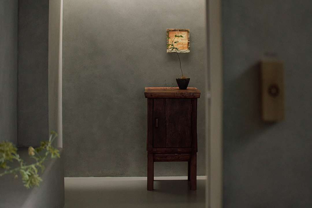벽으로 막은 면에는 한지와 자연광을 이용해 은은한 분위기를 만들었다. 벽의 굉장히 작은 부분에 한지를 붙이고, 그 뒤쪽 창은 벽으로 막지 않고 그대로 자연광이 한지를 투과해 들어와 자연스러운 조명이 되도록 했다.