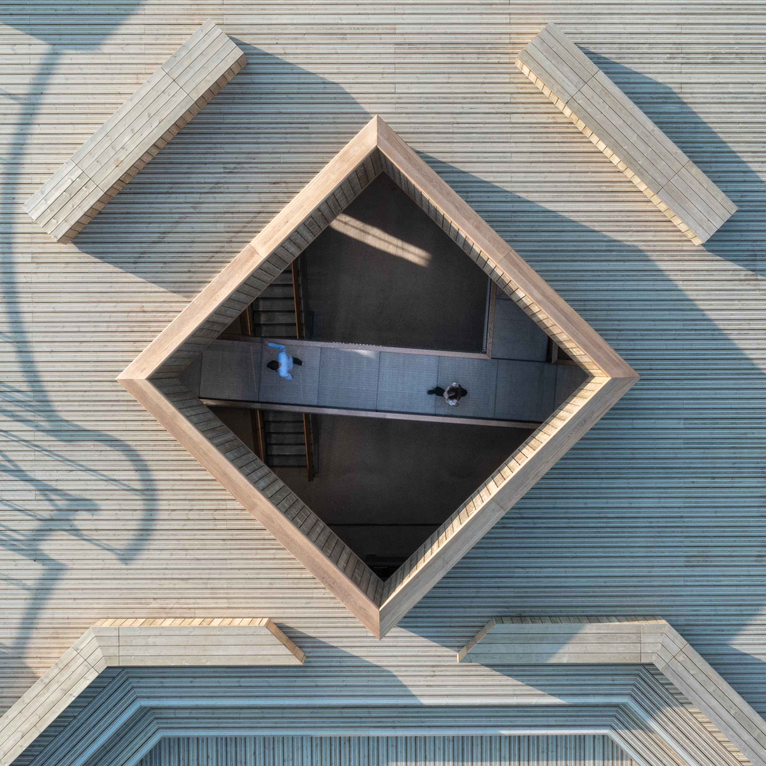 데크에는 그룹 활동을 위한 원형 극장 좌석이 포함되어 있으며, 이전에 볼 수 없었던 1층 기능에 접근할 수 있는 일련의 경량 보행로가 구조물에 매달려 있으며, 두 개의 망대 장치의 복원을 통해 지붕 층으로의 접근을 배가시킨다.