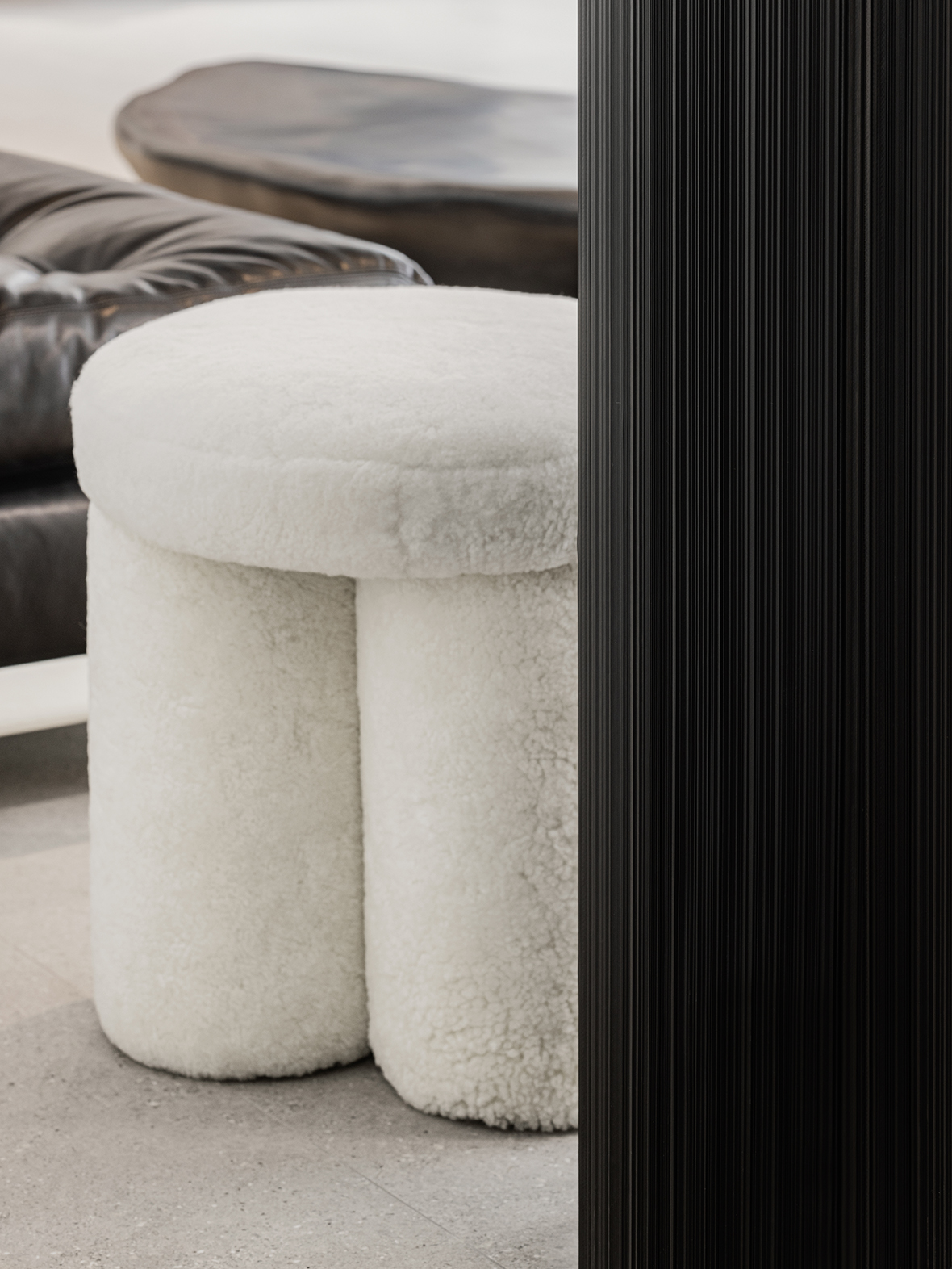 레하만이 가지고 있는 시크한 이미지를 공간에도 그대로 담아냈다. 시크하고 미니멀한 느낌을 위해 모노톤을 기반으로하고 사용된 마감재는 시크한 느낌을 연출할 수 있도록 깨끗한 벽체와 금속을 사용하였고 일부 구간에 텍스처 있는 벽지, 코르크 소재, 독특한 기법의 3D 메탈을 사용하여 자칫 평면적일 수 있는 내부 비주얼에 엣지를 더했다. 그레이톤 바닥과 화이트 벽체를 베이스로 하여 풍성한 미니멀 베이스를 만들었다. 미니멀한 컬러와 금속이 주는 쿨하고 시크한 베이스에 따뜻한 물성의 우드 텍스쳐를 가진 코르크 소재를 활용하여 믹스매치하고 3D 메탈 엔트리 도어를 열자마자 펼쳐지는 가구의 풍경은 시크함 속에 안락함을 더하기 위한 요소로 스타일링되었다. 클린하고 린하게 떨어지는 실루엣이 특징인 레하만의 디자인을 살려 공간에서는 길이감 있는 슬릿 응용해 곳곳에 과감한 사이즈의 마이너스 디테일을 적용시켰다. 엔트리에서 만나게 되는 메인 도어는 3D 메탈 소재를 활용해 시크한 금속 소재이지만 새로운 텍스쳐와 반짝이는 고광도를 사용하여 레하만의 독보적인 유니크함을 더했다. 공간 자체에서 시크함이 물씬 풍기는 레하의 쇼룸은 쿨하고 멋진 레하 그 자체를 보여주기에 매우 충분하다.