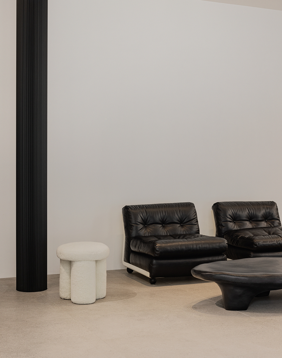 Lehaman's chic image was captured in space as it is. Monotone-based and used finishes for a chic and minimalistic feel are clean walls and metals to create a chic look, and some sections are made of textured wallpaper, cork material, and unique 3D metal to add edges to the flat interior visuals. A rich minimal base was created based on the gray tone floor and white walls. Using cork materials with a cool, chic base and warm wood texture given by minimal colors and metals, the landscape of furniture that unfolds as soon as the 3D metal entry door is opened is styled as an element to add comfort to the chicness. Taking advantage of Leha's unique design, which features a clean and lean silhouette, the space applied long slits to apply bold-sized minus details everywhere. The main door you will meet at the entry is a chic metal material using 3D metal material, but it adds Leha's unique uniqueness by using a new texture and shiny high luminosity. Leha's showroom, which exudes chicness in the space itself, is very enough to show the cool and wonderful Leha itself.