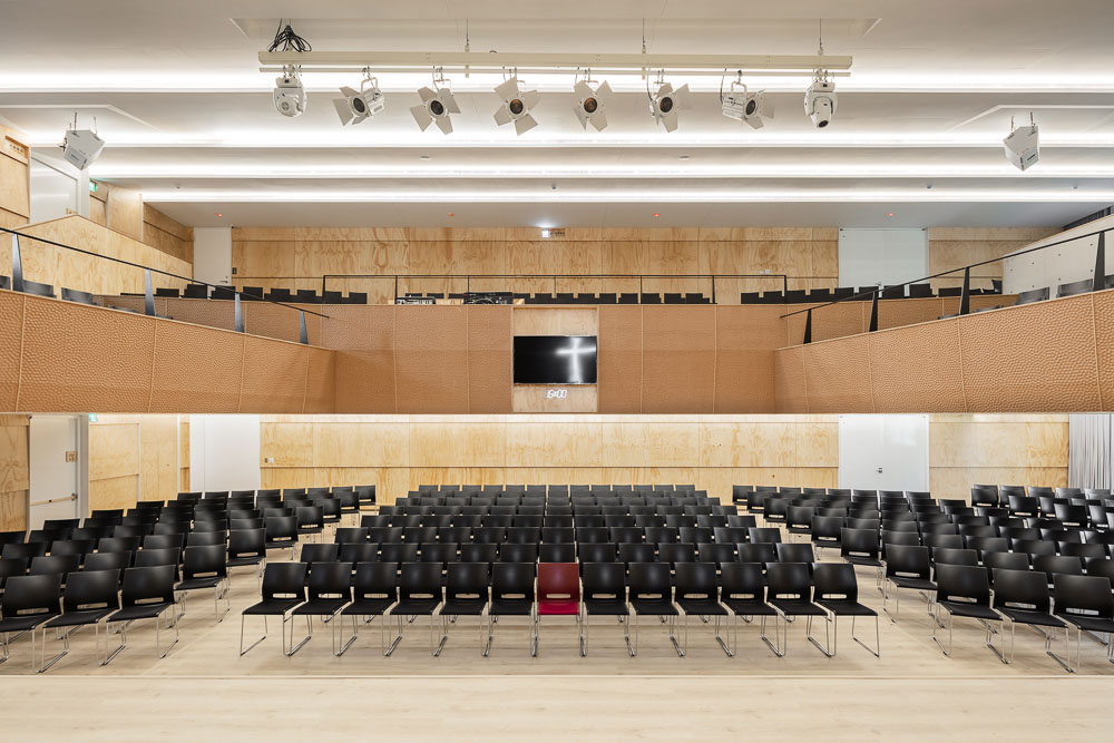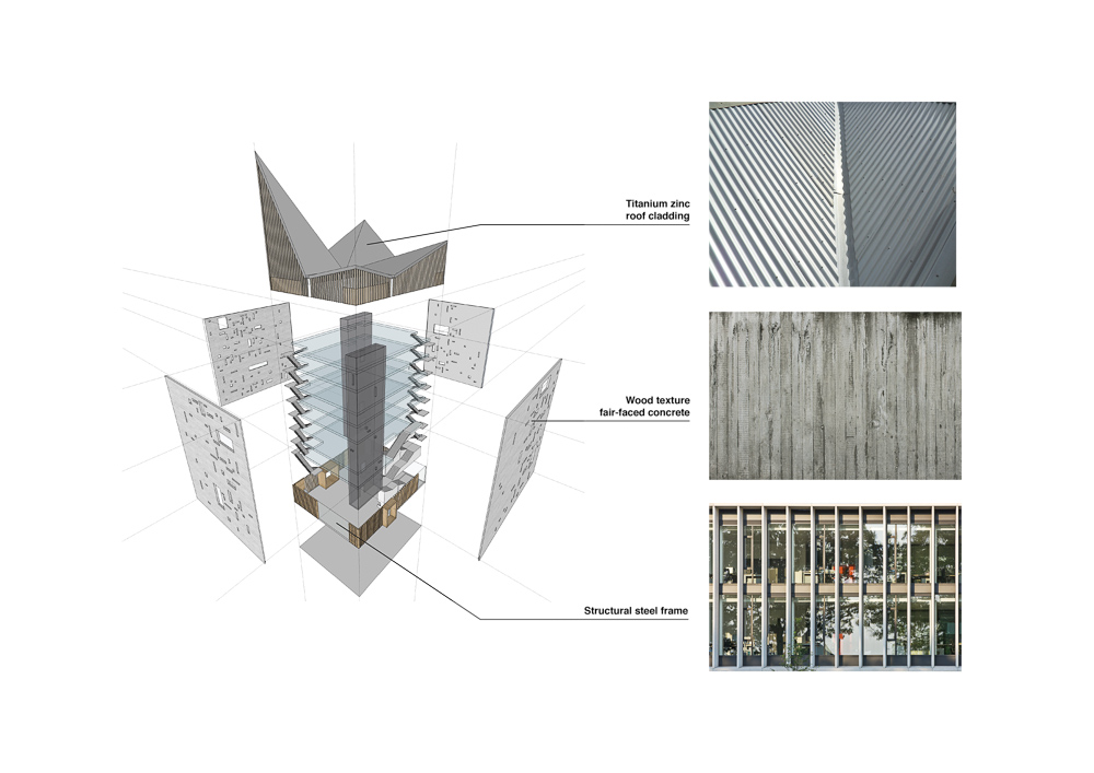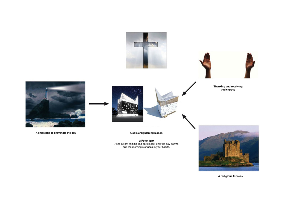 Because of the difficulty to acquire land rights and the crowdedness of metropolitan spaces in Taiwan, religious architecture in this country often ought to confront the distance between man and heaven caused by the vertical massing of buildings. Unlike European churches that are able to create sanctity through structure, elevated space and mysterious lighting between the ground level and roof, the Tamkang Church also has to face the challenge of fulfilling the building code and floor area requirements by vertically stacking both the day‐to‐day and sacred spaces of the church. How to build a holy and sanctified place that embraces the love and compassion within the society is the most critical focus on the design of the Tamkang Church.