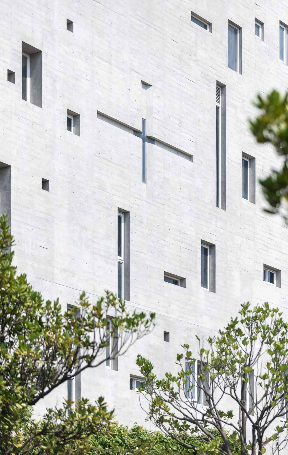 The architecture of cathedrals often uses the cruciform shape as the main element to organize its space; the design concept of the Tamkang Church is also based on the cross, but in a broader sense. It interweaves people’s lives through the church celebrations and their daily life and brings nature into the city life The site is located on the northernmost side of the island of Taiwan, Danhai in New Taipei City is a windy and rainy city in the coastline. The building faces the harsh conditions of this sea shore and embraces the beautiful scenery of this environment. Although, the customized thick double layered walls can be used as an architectural element that regulates the climate they as well play the role of intertwining lives within the space.