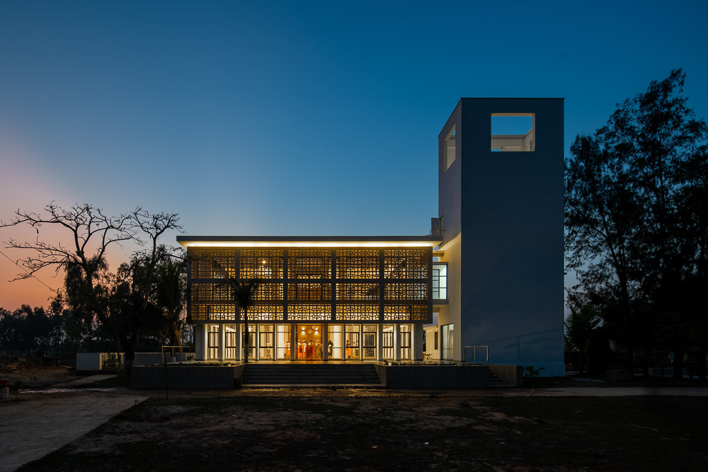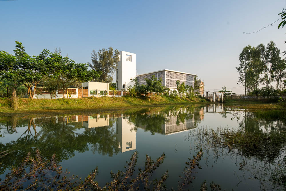 The mosque is at West Raichota which is a remote coastal area almost 40 km south from Chittagong. The mosque was an essential demand as the single story, almost 35 years old mosque was severely affected by flood several times and lost its usability. The mosque is surrounded by an existing two story Madrasa and a family graveyard at south, and another graveyard at north and at west a pond and a typical shelter house cum primary school, which is one of the inspirations for the formal expression of the mosque.