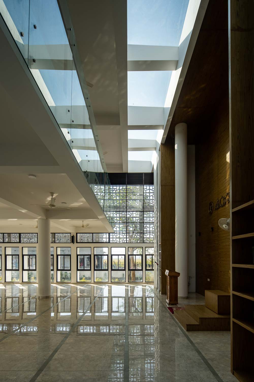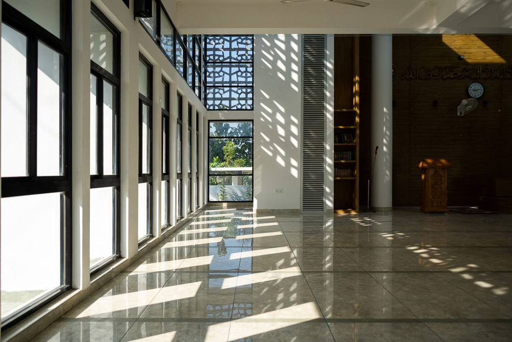 유리 지붕이 있는 2층 높이의 볼륨은 시각적으로 상층을 하층부와 연결하는 이맘과 미랍을 위한 영역에 창조되었다. 미랍은 목재 베니어판에 의해 꾸며졌고, 책장은 추가적인 집중을 만들어낸다. 이 유리 지붕이 있는 2층 높이의 공간은 하늘과 비를 들여 주며, 한계와 무한의 중간에서 감각을 창조해낸다.