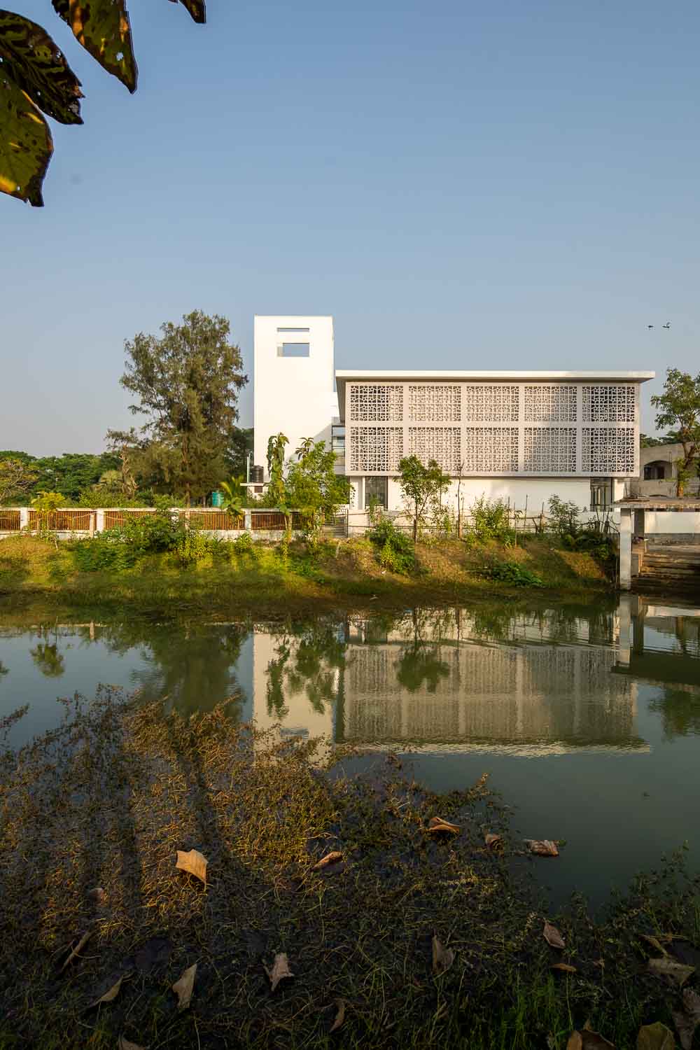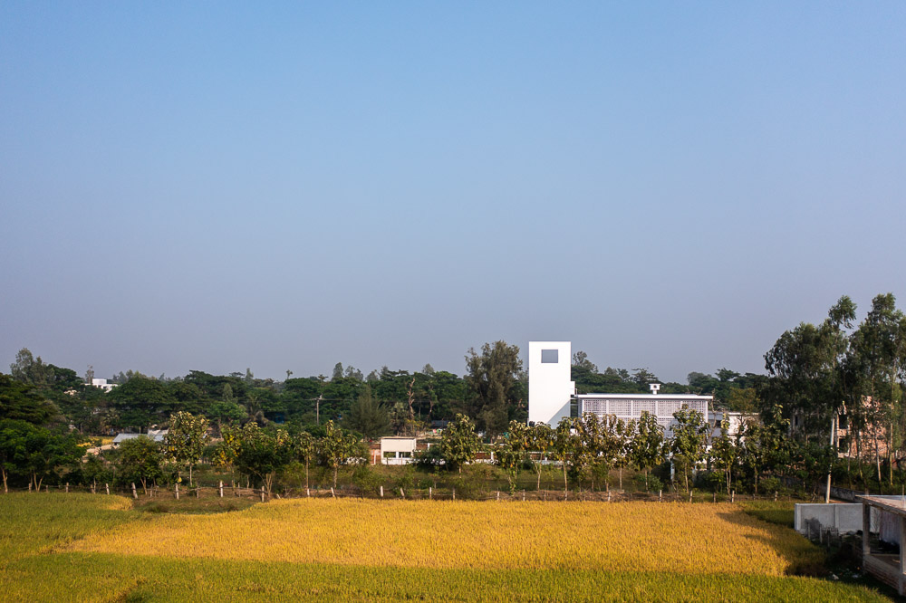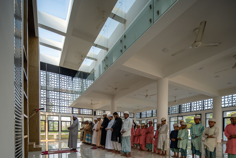 The mosque is at West Raichota which is a remote coastal area almost 40 km south from Chittagong. The mosque was an essential demand as the single story, almost 35 years old mosque was severely affected by flood several times and lost its usability. The mosque is surrounded by an existing two story Madrasa and a family graveyard at south, and another graveyard at north and at west a pond and a typical shelter house cum primary school, which is one of the inspirations for the formal expression of the mosque.