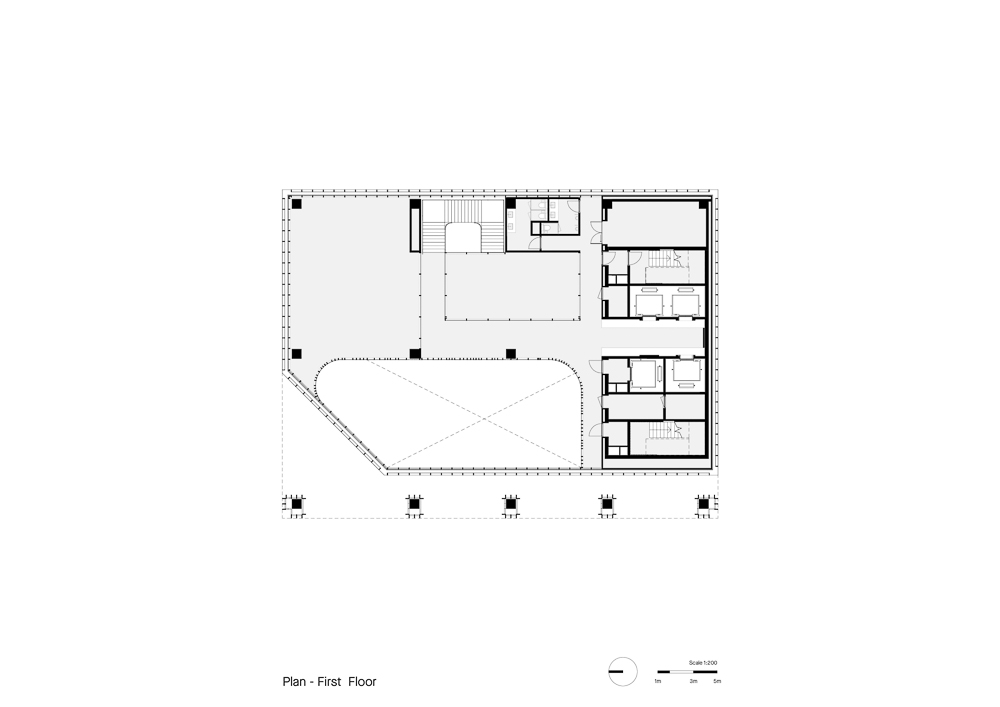 Maximising the land allocation, the building sits elegantly in a densely built up area of the city.