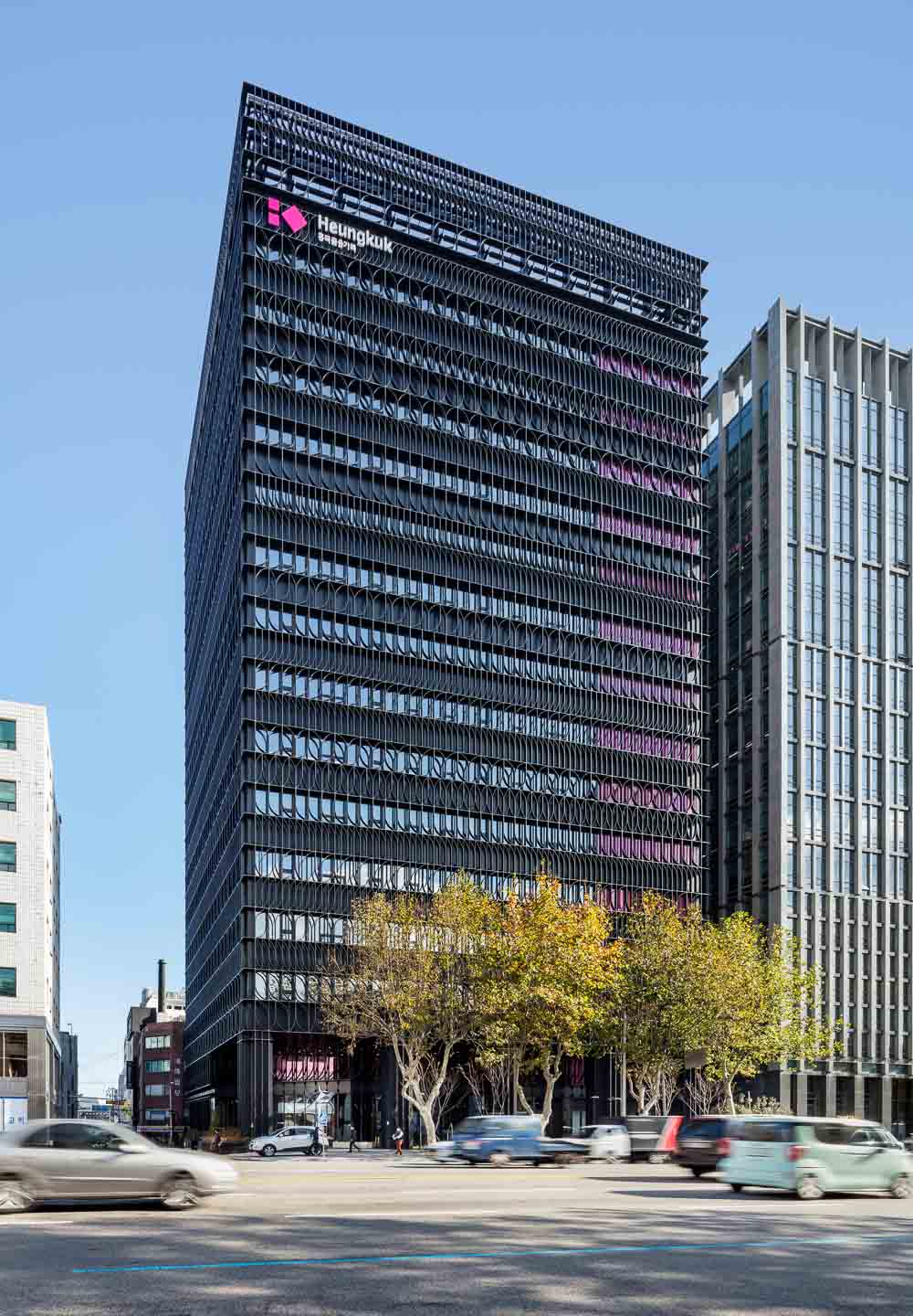 초량동에 들어선 흥국생명의 부산사옥은 KTX역과 가까이에 있다. 기존의 사옥 건물을 활용하여 새로운 공간으로 재탄생됐는데, 특히 입면의 검은색과 분홍색의 선형 패턴이 특징이다. 흥국생명의 상징인 분홍색이 사용된 파사드 패턴은 건물 안으로 들어오는 빛을 필터링하면서 건물 내부에 규칙적인 그림자를 만들어 낸다. 면적을 최대로 활용하여 빽빽하게 늘어선 도시 건물 속에서 흥국생명 타워는 특유의 우아함을 자아내며, 낮에서 밤으로 시간의 흐름에 따라 나타나는 주변 환경의 변화 속 녹아든다. 건물 내부에서 나오는 빛에 의해서 건물만의 특징적인 파사드 패턴이 주변에 드리워진다. 건물의 회사원들과 방문객들은 옥상 정원에서 항구가 있는 주변 경관을 한눈에 내려다 보며 휴식을 취할 수 있다.