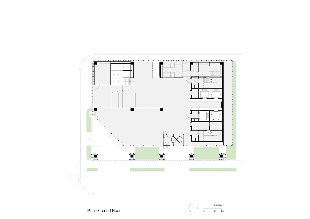 Maximising the land allocation, the building sits elegantly in a densely built up area of the city.