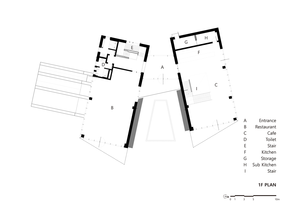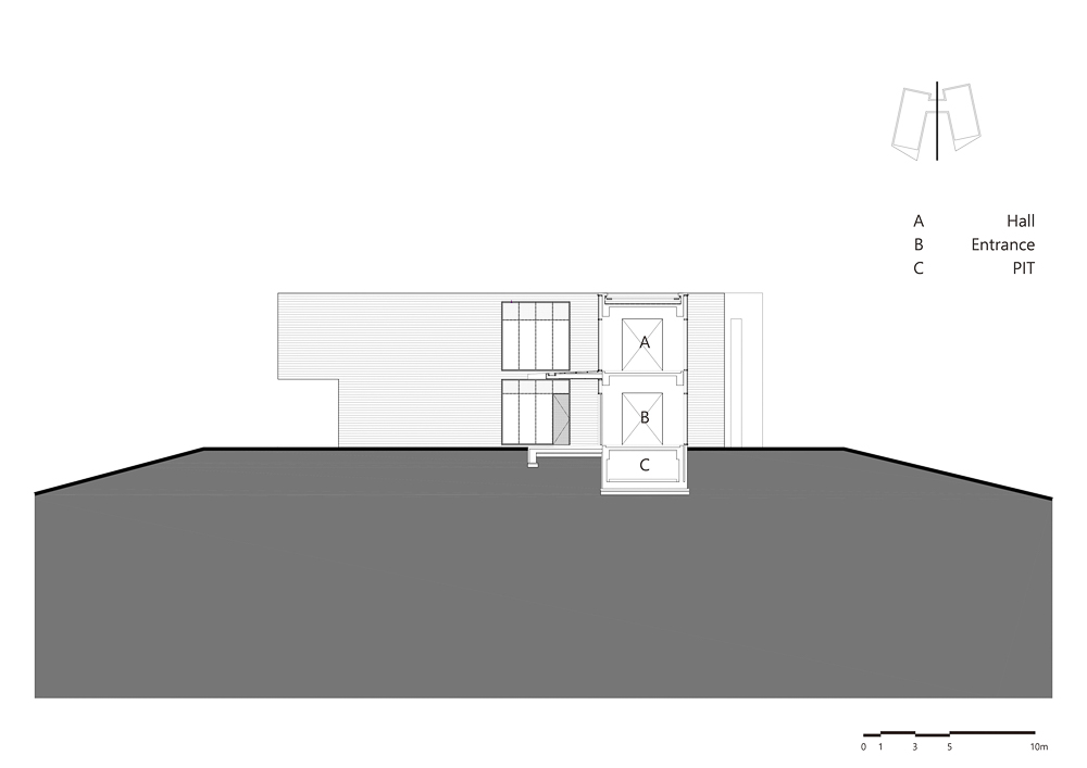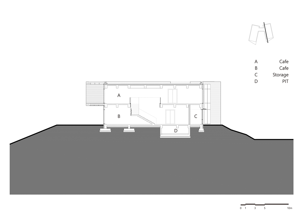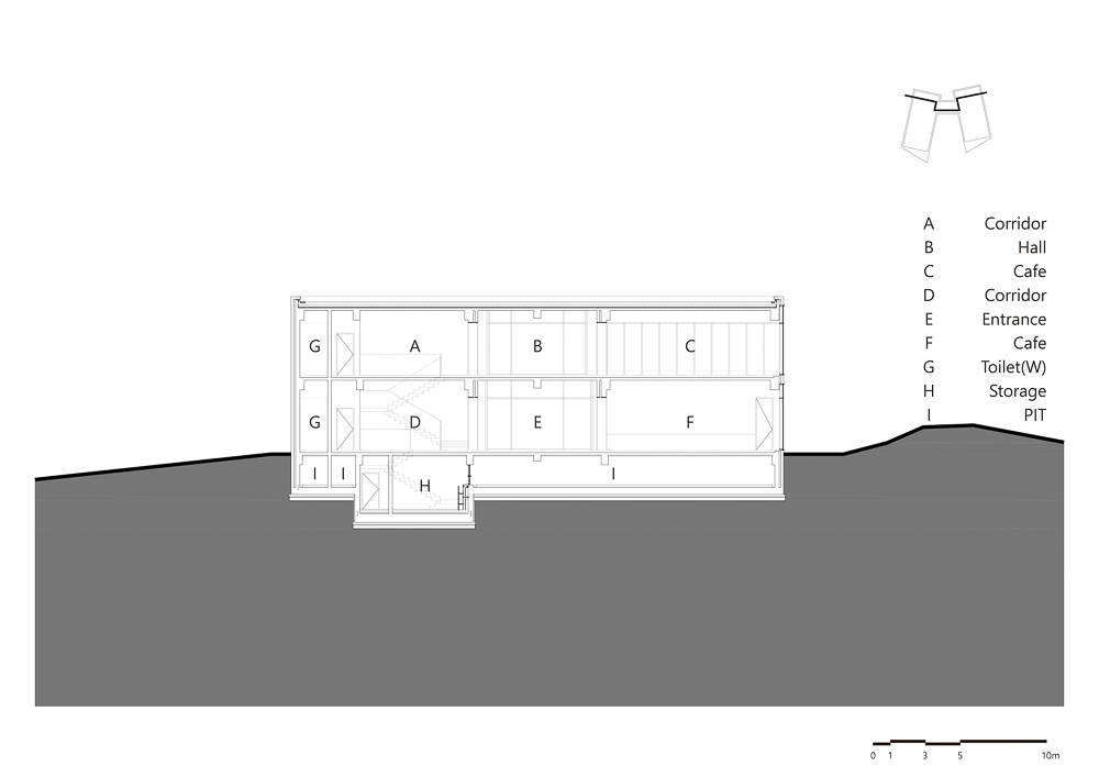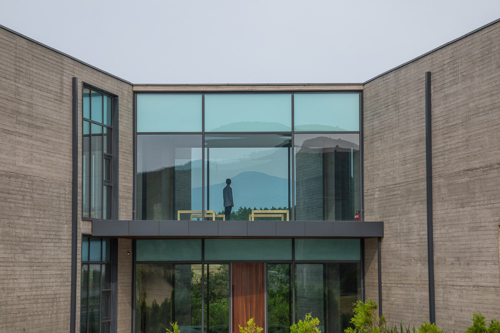 The center of the building, which consists of two 120 pyeong buildings, consists of the entrance and the hall against the backdrop of Halla Mountain and Yeongju Mountain, and serves to combine them into one building. The two masses give a clear direction rather than the meaning of connection, making it a subject that gives the meaning of the building’s Yeongju Mountain and Halla Mountain, which are reflected through windows, are located in the courtyard water space. The water in the middle becomes a mountain, sometimes a sky, and captures nature as it is. Place a wall to emphasize the axis and turn the two buildings to bring Hallas Mountain closer. For the wall, a pine board is placed in a mold and concrete is poured to make a rough wall rather than a smooth wall. It creates a rough wall naturally made with the passage of time and wind, not an expression of physical properties that are heterogeneous to the surrounding environment. The wall serves as a visual frame as well as a role of dividing each program. Through the wall, it was blocked and opened by the architect intended. The open space becomes a window and connects the inside and outside to capture the surrounding Oreum. The oak tree, which was the owner of the site, becomes the background of the gallery and assimilates with the landscape to create a root view.