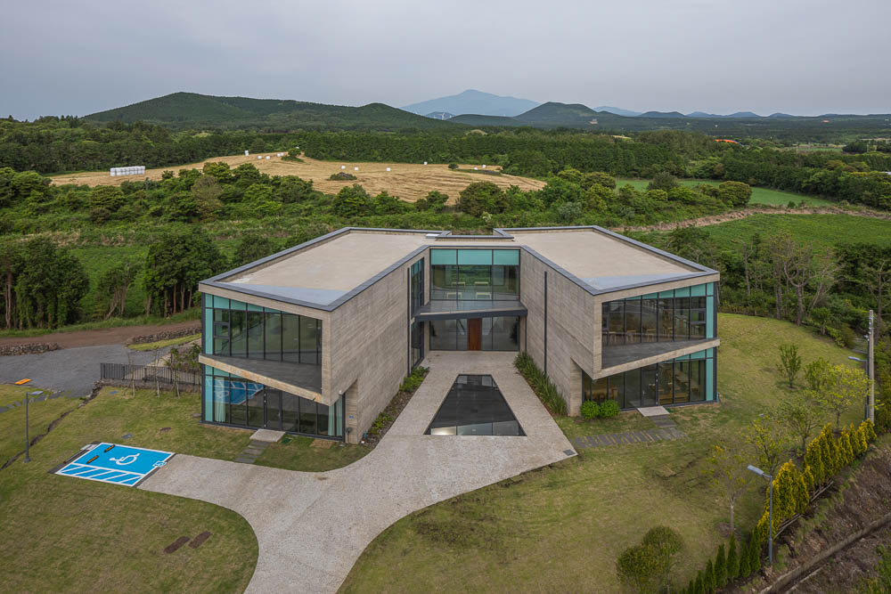 368 Oreum (Volcanoes Cones) are irregularly distributed around Halla Mountain, making Jeju another landscape. On the other hand, Yeongju Mountain was located, and about 200 Oreum visible from the site were scattered and meandering. The work of planning construction in the garden where horses were grazing and grazing was to go beyond capturing this landscape and become a material for the landscape. In other words, it was an attempt to create a new landscape with borrowed landscape.