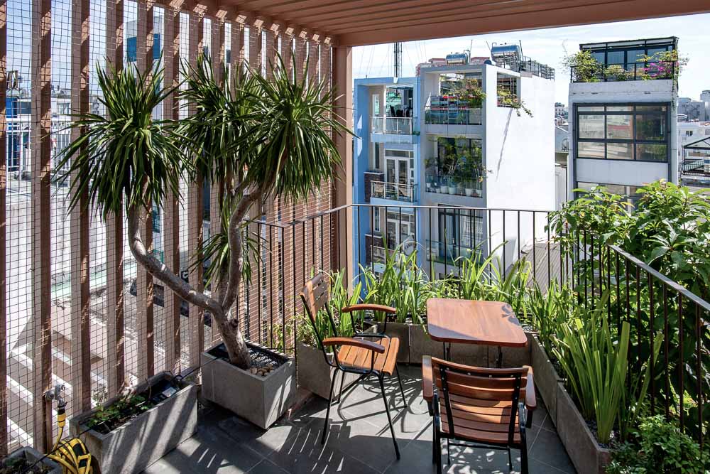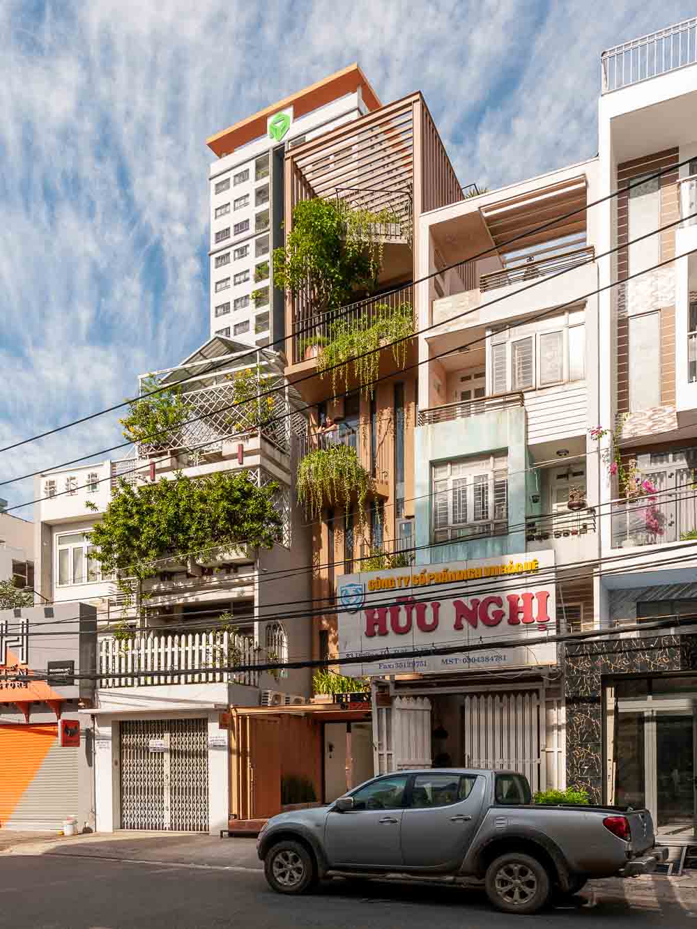 베트남 호치민시 번화가의 80㎡ 크기의 대지에 있는 6층짜리 타운하우스는 베트남에서 흔히 볼 수 있는 복합용도 도시 주택의 유형 중 하나다. 내부는 다양한 프로그램으로 구성되어있는데, 공유 공간과 서비스 공간, 작은 상업 공간과 6개의 풀옵션 임대 스튜디오가 있고, 맨 위의 2개 층에는 2개의 침실이 있는 건축주의 집이 있다.