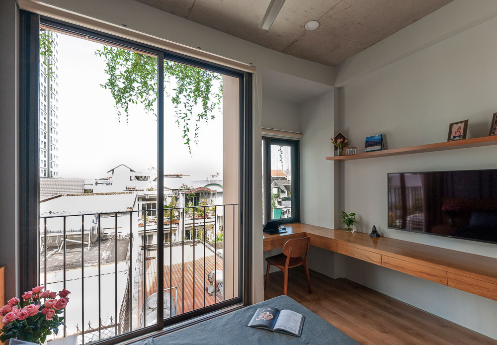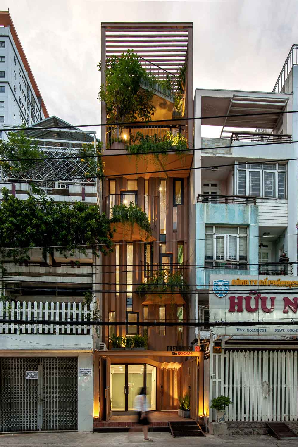 베트남 호치민시 번화가의 80㎡ 크기의 대지에 있는 6층짜리 타운하우스는 베트남에서 흔히 볼 수 있는 복합용도 도시 주택의 유형 중 하나다. 내부는 다양한 프로그램으로 구성되어있는데, 공유 공간과 서비스 공간, 작은 상업 공간과 6개의 풀옵션 임대 스튜디오가 있고, 맨 위의 2개 층에는 2개의 침실이 있는 건축주의 집이 있다.