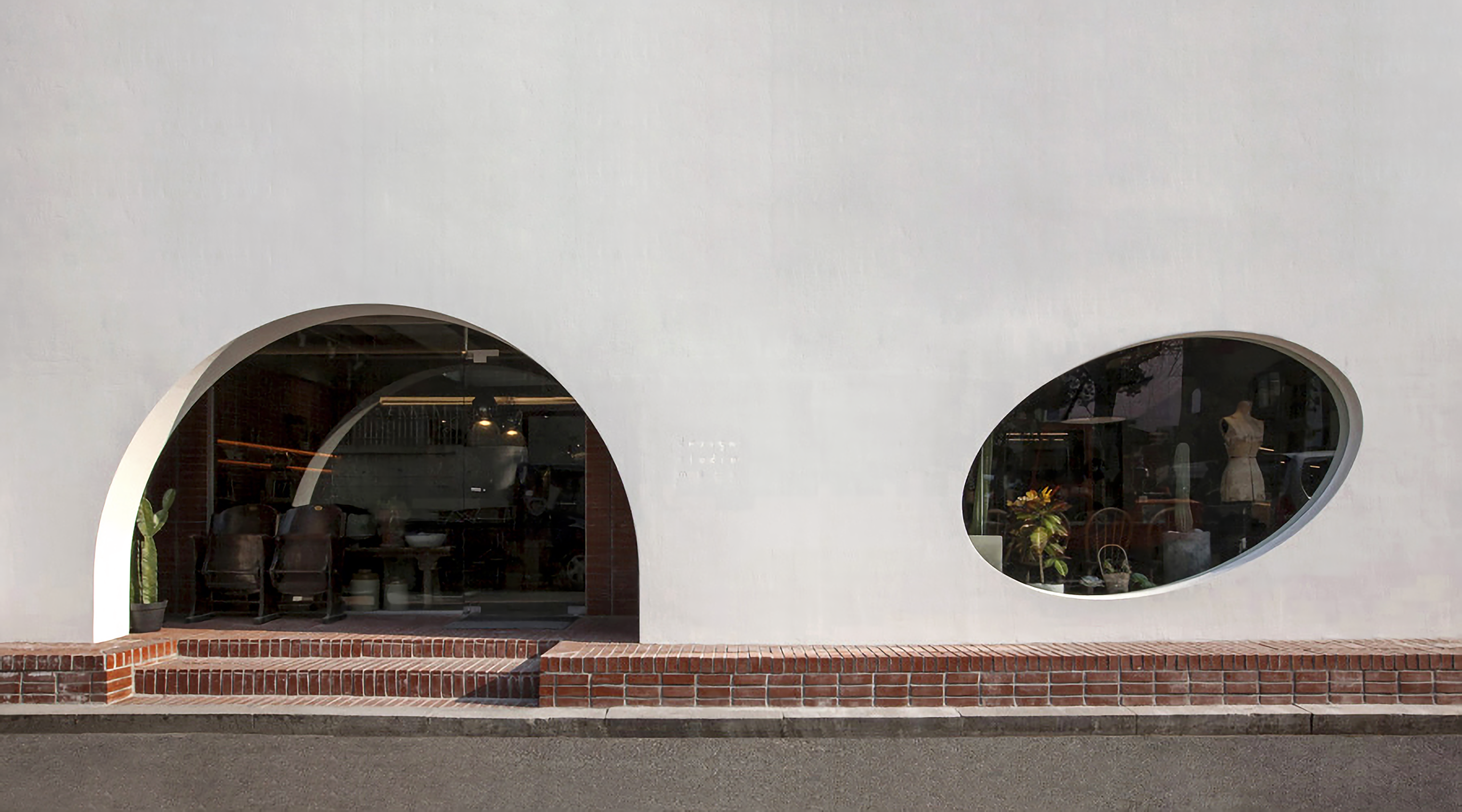 The facade is the most revealing part of design studio mono's identity. The composition and the chairman were very important. We constructed the form with soft curves, which are the main features of our design, and expressed it with arched entrances and round windows. The exterior material gave a contrast between white tone and red brick.
