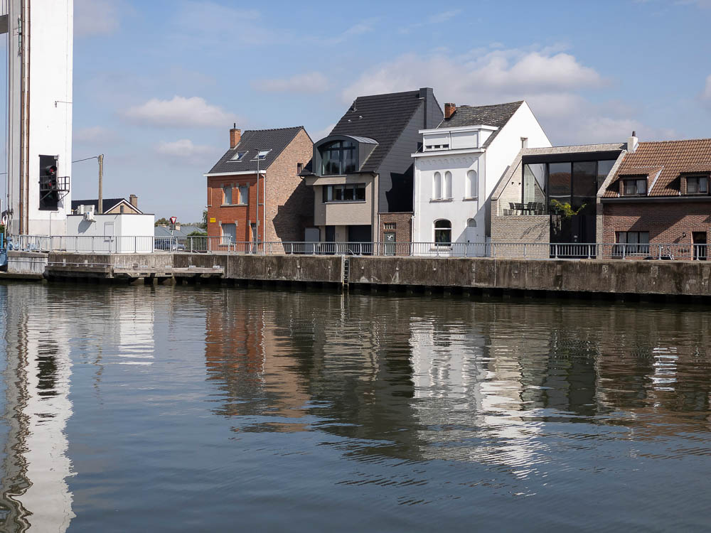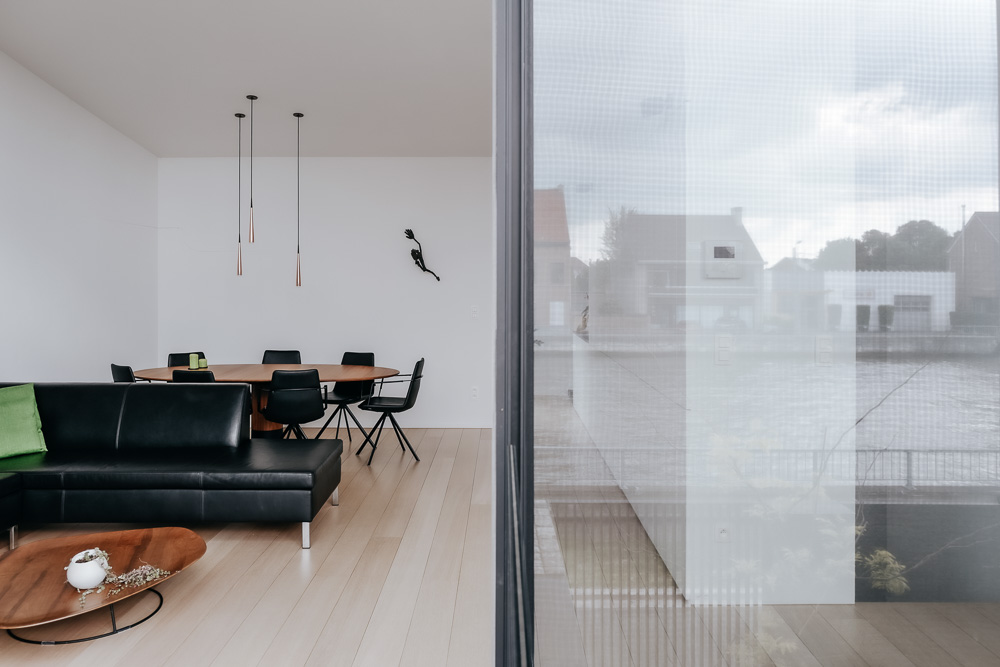 A small residence is inserted with originality among the houses overlooking the Brussel-Scheldt Maritime canal that splits the small town of Humbeek, part of the municipality of Grimbergen, in the province of Flemish Brabant in Belgium. In emphasizing the relationship with the canal, the project of this house draws upon an original spatial configuration based on the definition of a new relationship between the inside and outside.