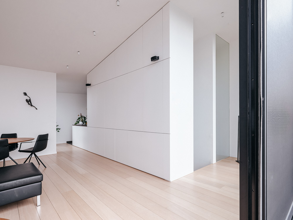 Humbeek Canal House was created to substitute a pre-existing building and makes the most of the available surface area by respectfully placing itself within the profile defined by the row of residential buildings facing the canal, complying to the surrounding gabled roofscape.