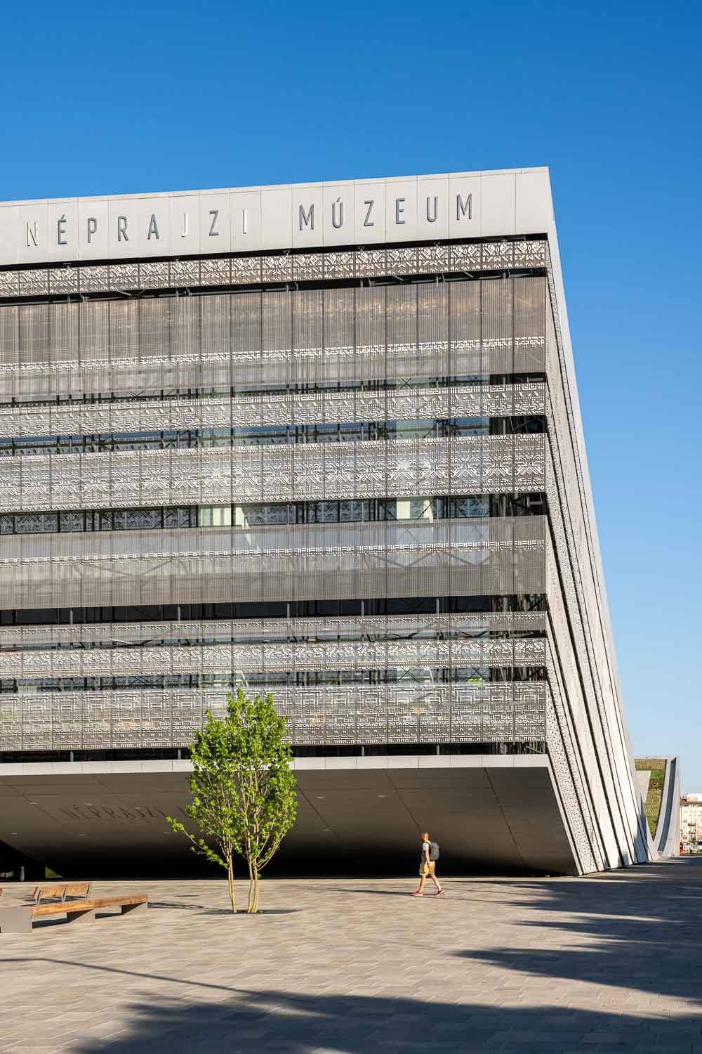 The multiple award-winnig new museum building ? which is part of Europe’s largest urban-cultural development called Liget Budapest Projecthas dynamic yet simple lines simultaneously harmonised with the park environment and communicating with the surrounding urban area. The City Park (Varosliget) is a familiar venue for the Museum of Ethnography: its collection debuted here at the 1896 Millennium Exhibition. The current location, which once was home to the Hungarian Curia, is far from being suitable to meet the requirements of a museum, and is severely limited in terms of space and opportunities. As a result of the international design competition, successful construction, and completion in May 2022 the Museum of Ethnography was finally given a new home in a truly modern building of an all-round world-class standard that will satisfy professional requirements, while catering to the needs of the collection and visitors alike.