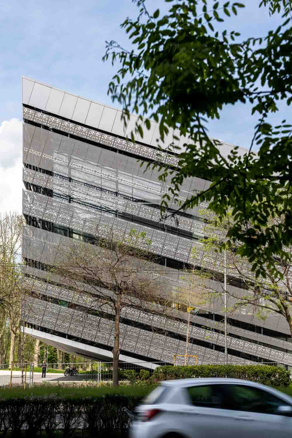 조경된 옥상 정원을 둘러싸고 있는 유리 커튼월은 50만 픽셀로 구성된 스크린으로 장식되어 있다. 이 입면 패턴은 헝가리의 토속적인 무늬를 금속 격자로 재구성한 것으로, 특수 로봇에 의해 레이저 절단 알루미늄 그리드에 삽입되었으며 그 중 2,000개 이상이 건물에 부착되어 있다. 작은 큐브들은 민족지학적 모티프에 대한 20개의 헝가리 및 20개의 국제적 현대 재해석으로 구성되었다.