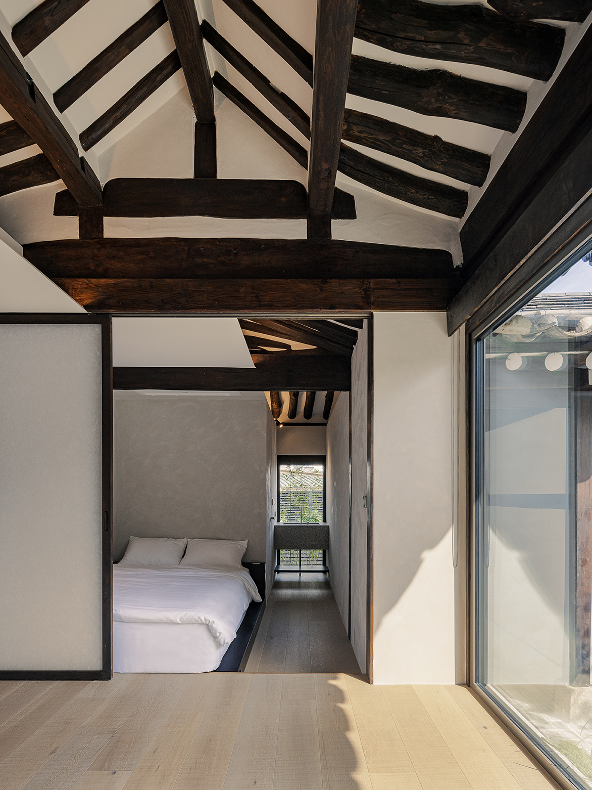 hiddenjae 프로젝트는 한국 bukchon에 위치한 155sqm 규모의 숙박시설로 oftn studio가 디자인했다.