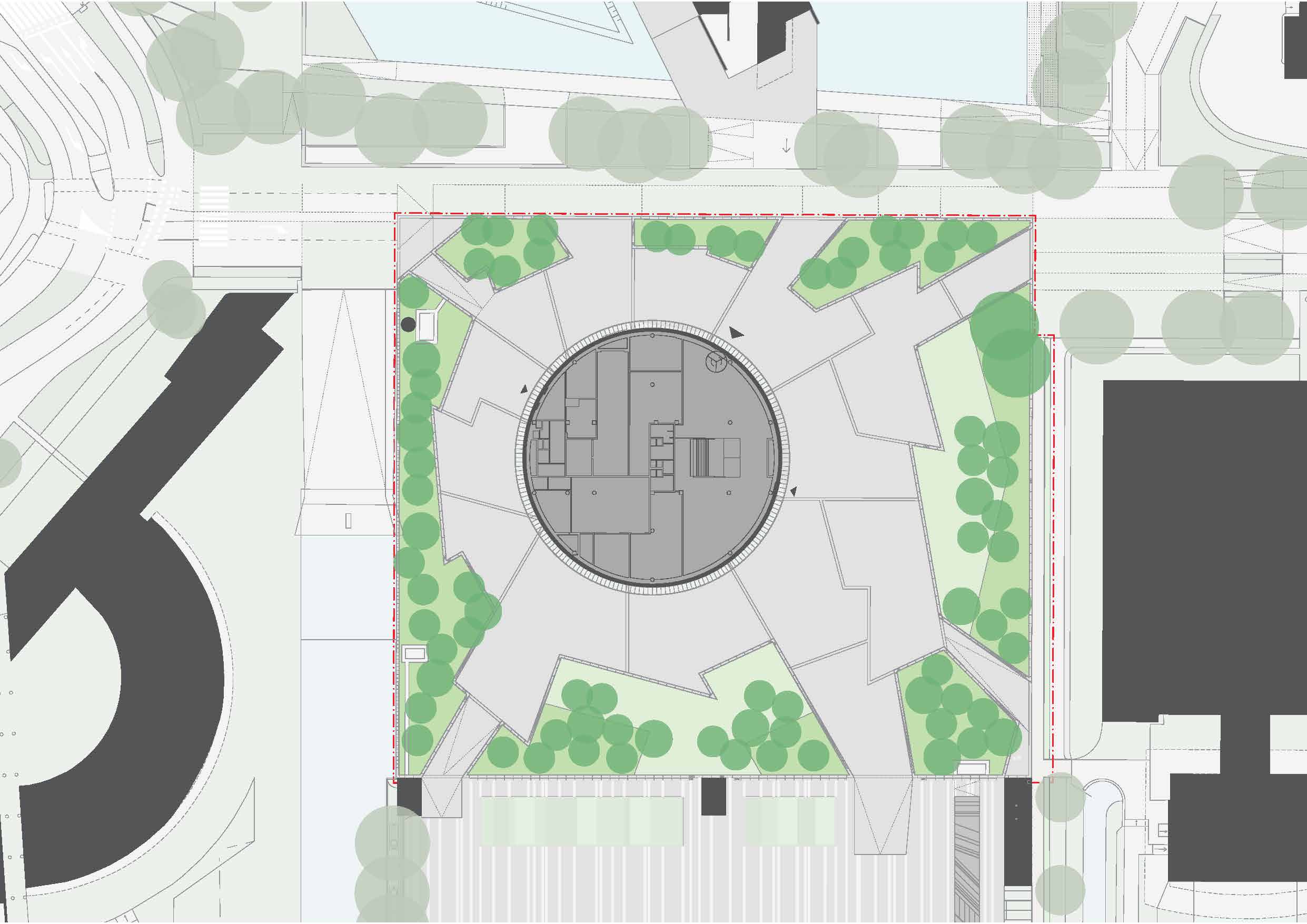 미술관은 도시에 자연을 더함으로써 하나의 실험이다. 이는 오픈하기도 전에 최고의 네덜란드식 지붕으로 상을 받았던 35m 높이의 옥상 숲에 위치한다. 75개의 자작나무, 풀, 그리고 20개의 소나무가 지붕 위에 놓여져 있어 물을 보존하고, 생물 다양성을 증진시키며, 도시의 더위 스트레스를 줄이는 데 도움된다. 이 프로젝트를 위한 나무는 3년 동안 식물원에서 그들의 새 집을 위해 준비되었다. 뿌리가 서로 연결되어 있고, 지붕에 있는 방풍림과 십자형의 레스토랑이 강풍으로 부터 자작나무들을 보호하기 때문에 35m 높이에서도 폭풍우를 견딜 수 있을 것이다.