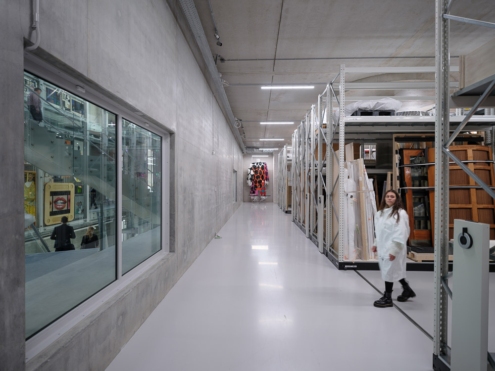 The ambition was to create a building that seems to disappear into its surroundings, but at the same time is a safe house for the collection, which is worth billions. The depot owes its shape to the desire to give the building a relatively small footprint. As a result, the building takes up less space in the park, but curves upwards with a 10m overhang to accommodate the entire programme – storage spaces, restoration studios, catering facilities, and film and presentation rooms. The building has five climate zones to accommodate the most delicate art, from prints and paintings to photography.