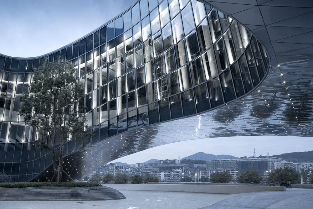 Taking the architecture as a medium, the design team constructed a “traversable urban garden”, which opens to the city in multiple dimensions and connects the mountain and stream. Considering that the project’s site is a key node of the slow-traffic system along the stream, the architects lifted the ground floor of the building to form a large transitional space, which is available for accommodating a large volume of human flow and extends to the bank of Futun Stream. This area creates an “urban living room”, which blends into the urban setting in an open gesture. This place is enlivened by skateboarding boys, singing buskers and dancing groups. It provides a venue for the citizens’ daily life activities and cultural events, and in turn is enriched by the citizens.