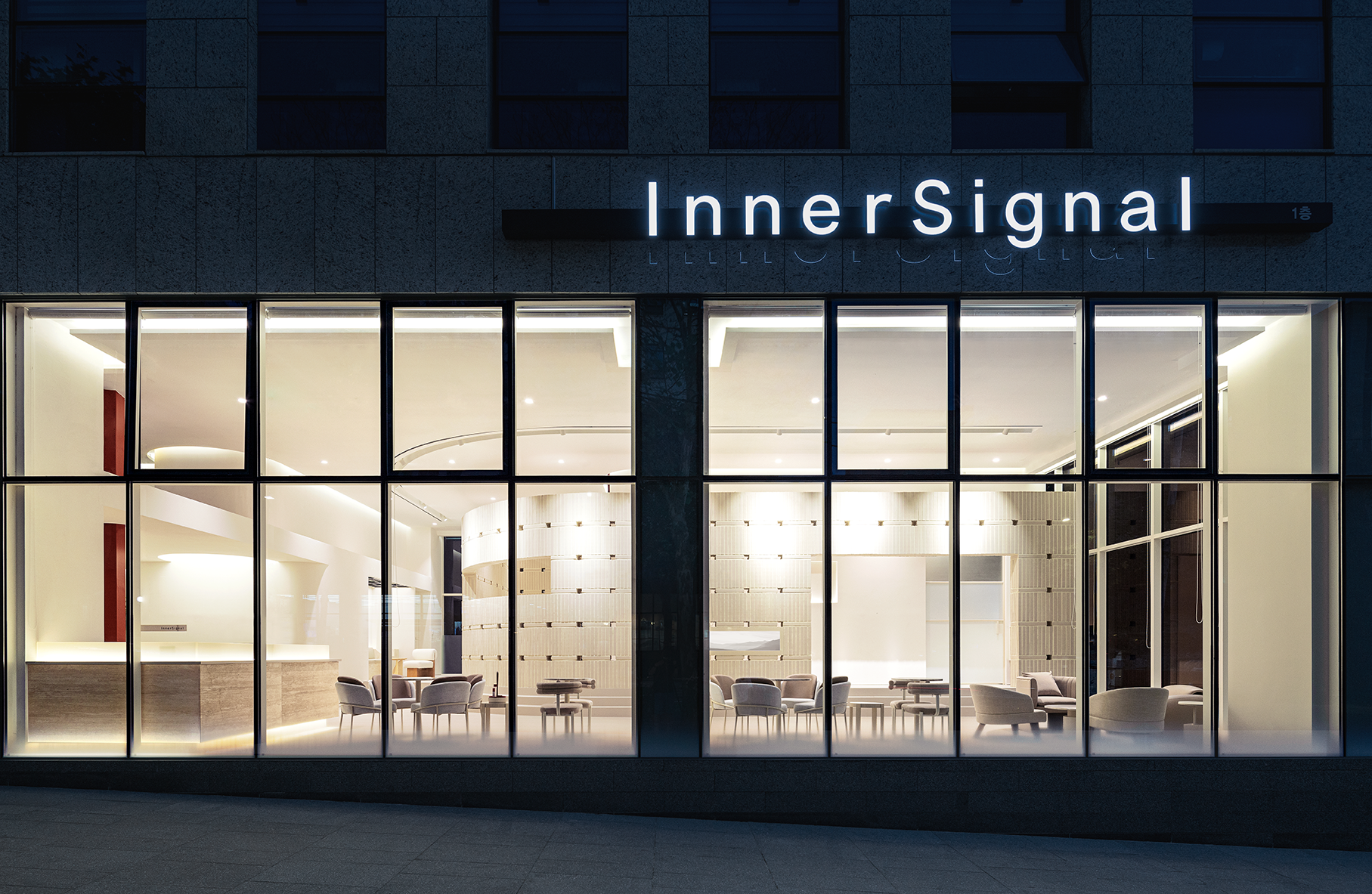 입구에서부터 이어지는 브랜드 컬러인 레드 포인트들은 일련의 프로그램 순서 길잡이 역할을 하며, 시퀀스에 따라 새로운 형태들의 레드형태를 만날수 있다. 고객을 처음 마주하는 레드 기둥과, 케어공간에 볼수있는 벽면의 레드단면, 케어공간의 끝과 휴게 공간에 시작을 말하는 원구의 형태의 레드 결정체, 장면마다 볼수있는 레드의 다양한 형태는 이너시그널의 브랜드 컬러를 기억속에 담을수 있는 요소로 작용한다. 전체적으로 차분한 분위기의 공간에서 에너지시그널의 순간의 생동감을 느끼게 한다.