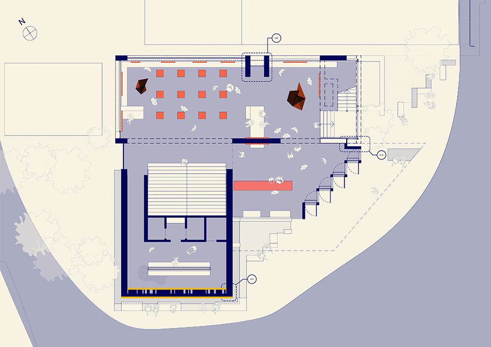 The building records the context of the past, the ambitions of the present while embracing the uncharted territory of the future. The building is structured around three thematic interior spaces, titled: “Beigou Memory”, “Beigou Now”, and “Beigou Future”, “Beigou Now”, located near the entrance, welcomes visitors into the museum and includes functional areas such as a cafe, a community activity room, and outdoor rest areas. “Beigou Memory” is located at the base of the original historic building and encompasses the main exhibition spaces. It includes the history of Beigou exhibition, a display showcasing the historical records of the original building, and an exhibition on Beigou’s architectural culture. This building also houses the multifunctional hall on the second floor, which can be used as academic lecture hall, temporary exhibition hall, or meeting hall.